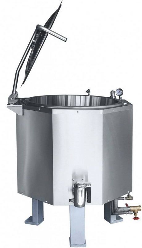 Котел обладает корпусом шестигранной формы, изготовленным из нержавеющей стали. Корпус установлен на три ноги с площадками для крепления к полу. В него встроен варочный сосуд цилиндрической формы с откидной выпуклой крышкой и Г-образной ручкой. Сосуд, его крышка и ручка также изготовлены из нержавеющей стали. Нагрев содержимого сосуда происходит за счет пароводяной рубашки, расположенной вокруг емкости и снабженной теплоизолирующим слоем. Пар от внешнего парогенератора (центрального паропровода) подается в рубашку через установленный снизу корпуса клапан. Там же расположен слив воды и отвод конденсата из рубашки. Слив готового блюда находится на передней панели корпуса. Сзади установлены кран залива воды в сосуд, манометр, предохранительный и вакуумный клапаны.