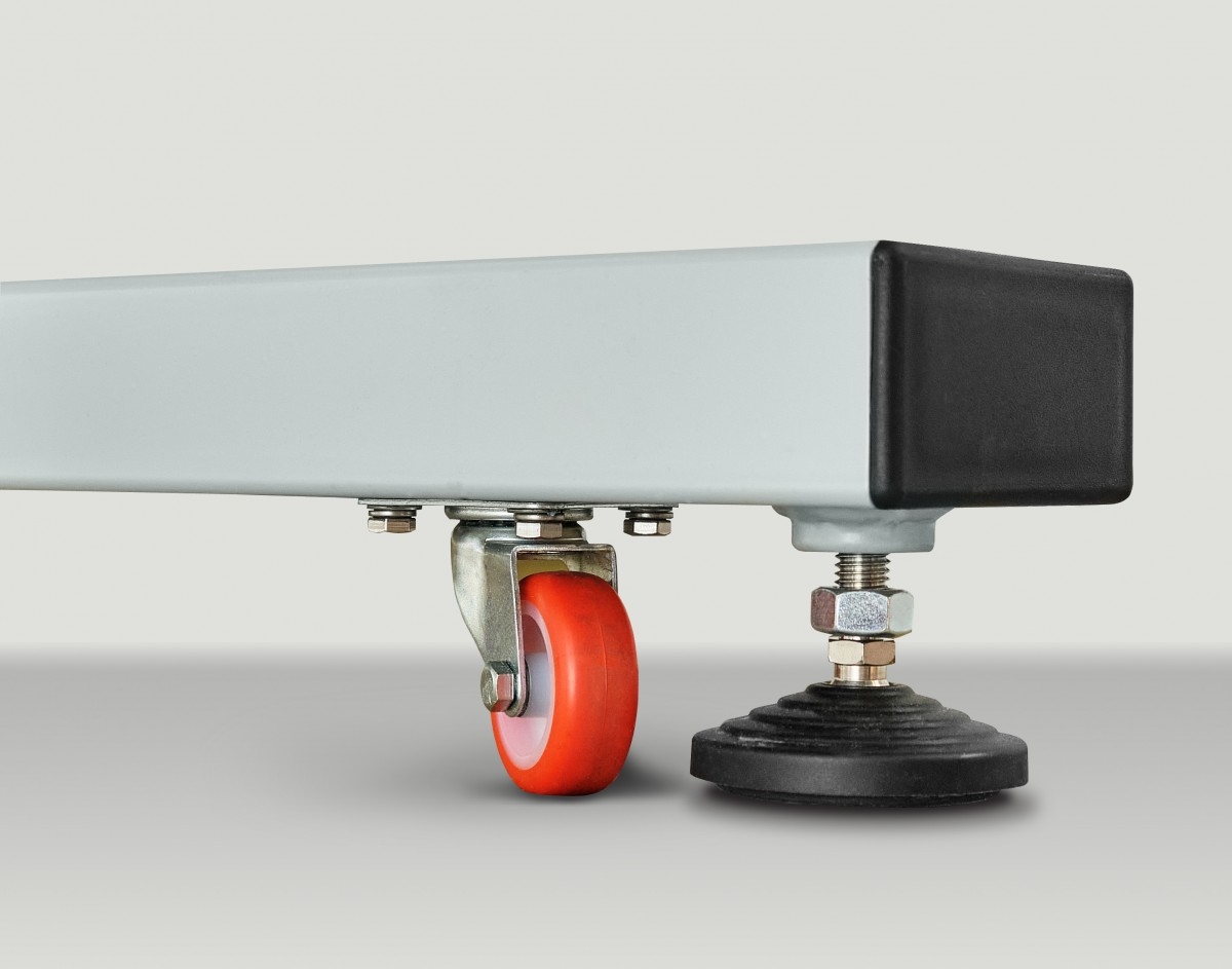 - Станина с регулируемыми опорами и колесами.