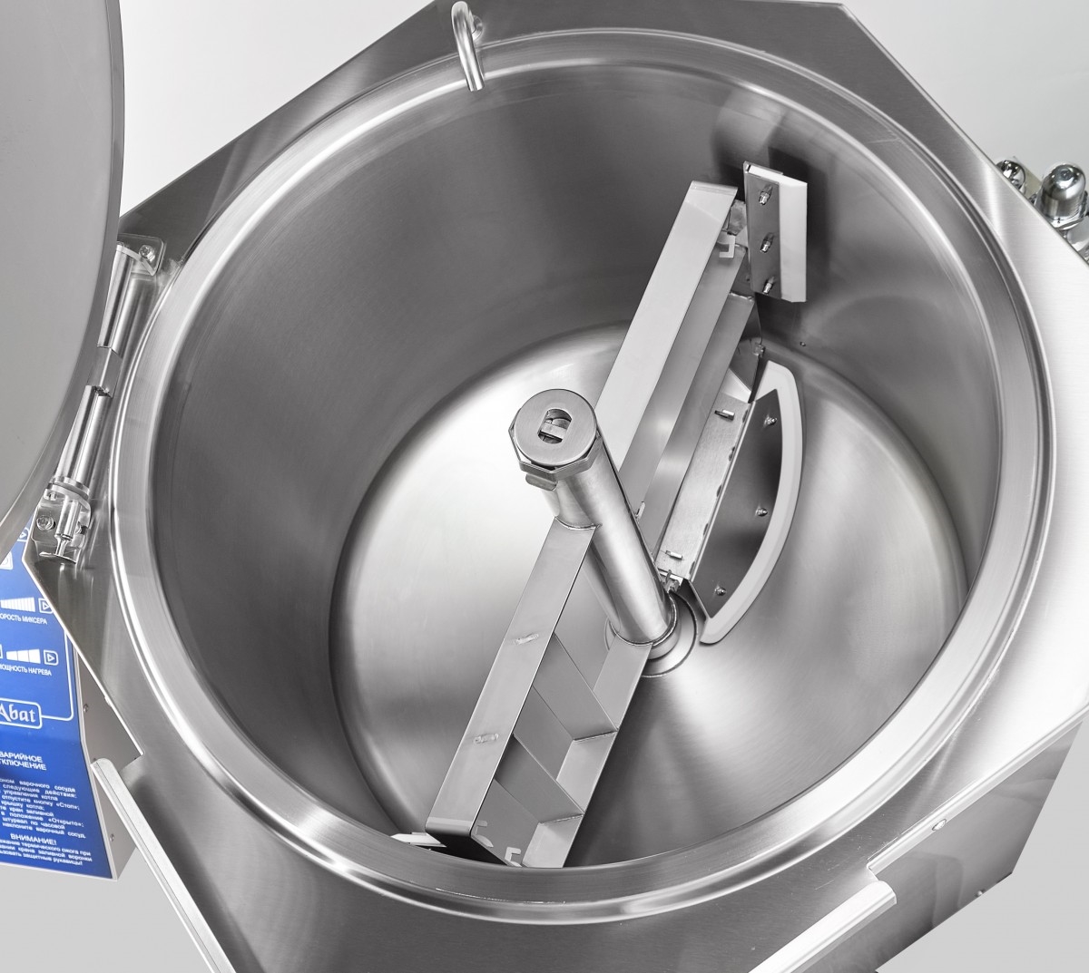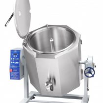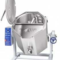 Корпус котла имеет шестигранную форму и закреплен на станине. В него встроена цилиндрическая цельнотянутая варочная емкость с крышкой и ручкой-рычагом. Для залива воды и слива жидких блюд на корпусе предусмотрены краны. В емкость легко монтируется и снимается миксер с плавной регулировкой скорости и реверсом.