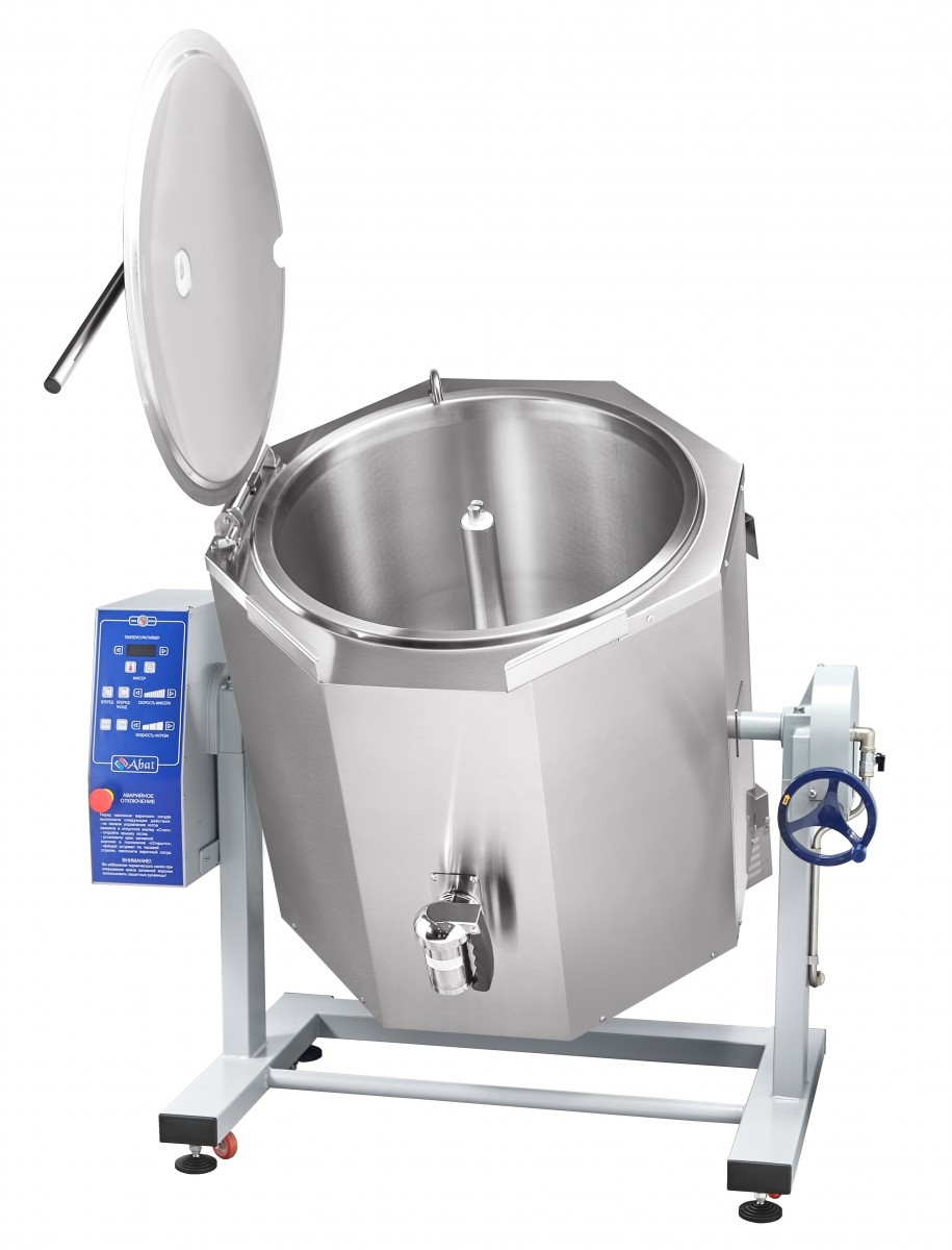Котел пищеварочный электрический Abat КПЭМ-160-ОМР-ВК предназначен установки на предприятиях пищевого производства, общепита и служит для готовки первых, вторых, третьих блюд, десертов, соусов.