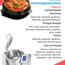 Нагрев и приготовление пищи в котле обеспечивает водяная рубашка, что исключает пригорание еды.