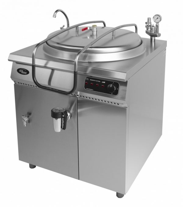 Нет необходимости перечислять достоинства пищеварочного котла Ф3КпЭ с электронным управлением, его технические характеристики говорят сам за себя. Применяется он на предприятиях общественного питания для приготовления первых, вторых, третьих блюд, соусов, каш и бульонов. Готовит котел на пароводяной рубашке, что гаранитрует исключение пригорания. Ф3КпЭ имеет три режима варки и модулированную форму. Кроме того, он безопасен и прост в использовании, так как оснащен сбалансированной крышкой с пружинным механизмом, дренажной сеткой и сливными кранами. Полезный объем Ф3КпЭ составляет 100 литров.