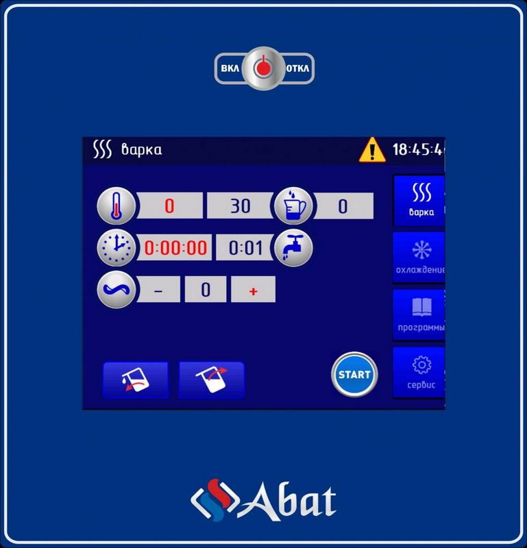Abat КПЭМ-160-ОМПпредназначен для кипячения воды, приготовления бульонов, супов, соусов, кремов, каш, омлетов, плова, рагу, карри, пюре и других блюд на предприятиях общественного питания и пищевой промышленности среднего формата. Благодаря усиленной конструкции миксера, плавной регулировке скорости и функции реверса данная модель может быть использована для взбивания и перемешивания практически любых продуктов. Нагрев воды производится способом «пароводяной рубашки». Оснащён электронной панелью управления и откидной крышкой, которая может быть зафиксирована в верхнем положении. Обновление программного обеспечения производится через USB-порт. Предусмотрено несколько режимов работы: нагрев (от 3 до 110 град.), охлаждение (от 110 до 3 град.), также оператор может задать одну из 50 программ, в каждой из которых может быть до 5 этапов. Оборудование оснащено таймером длительностью до 10 часов.