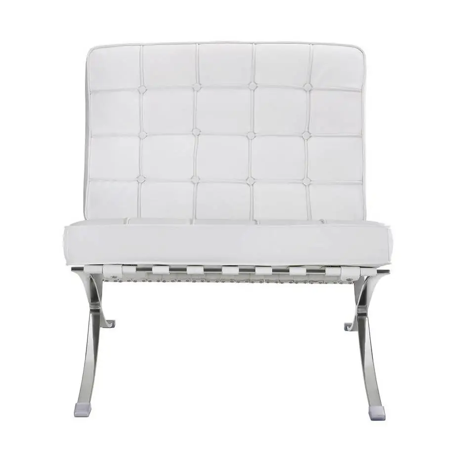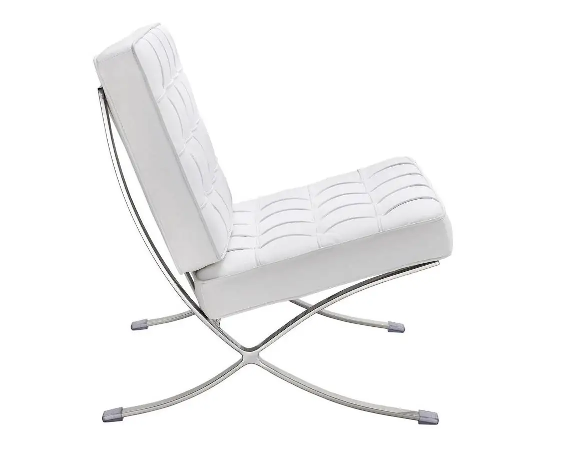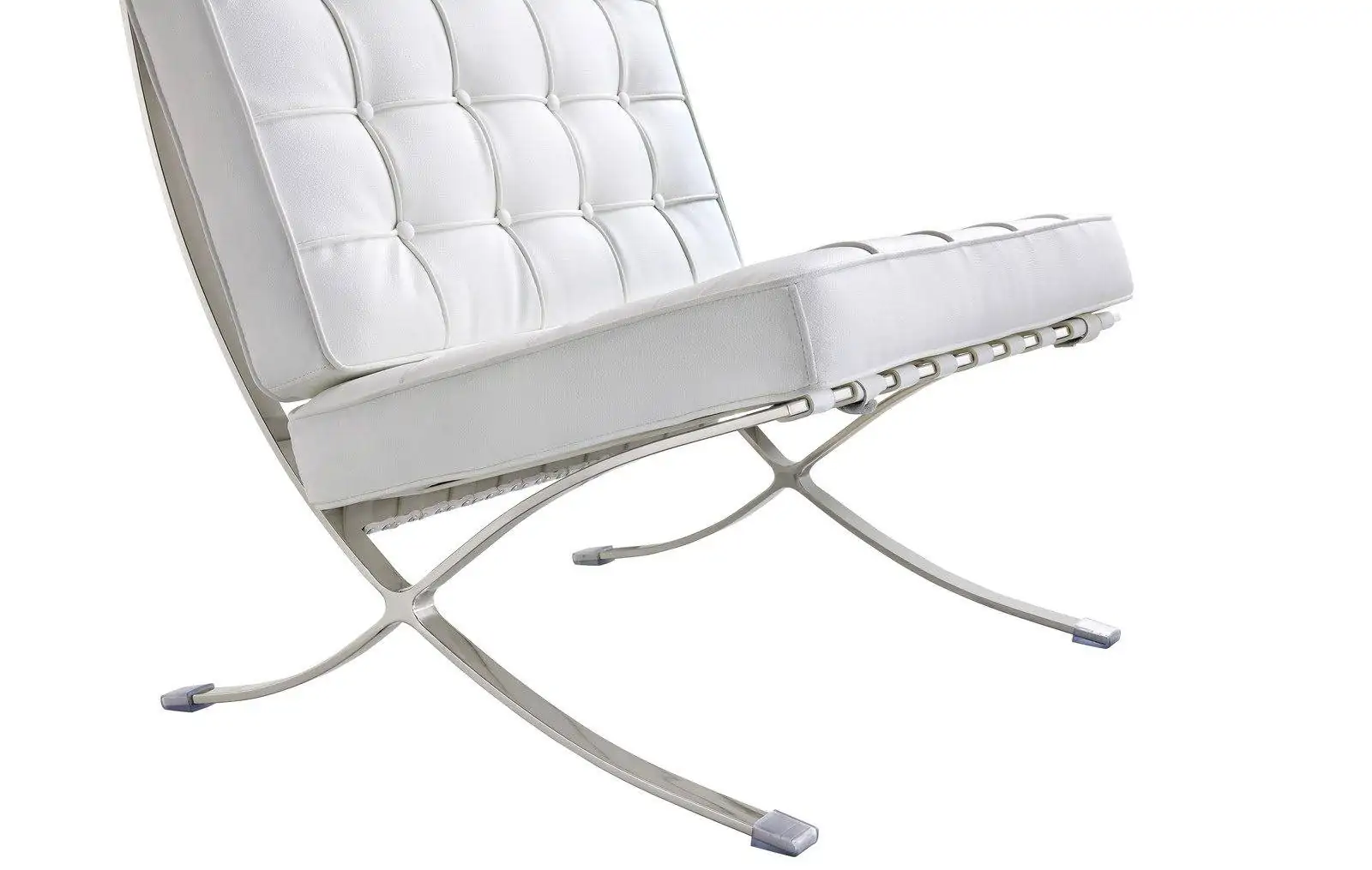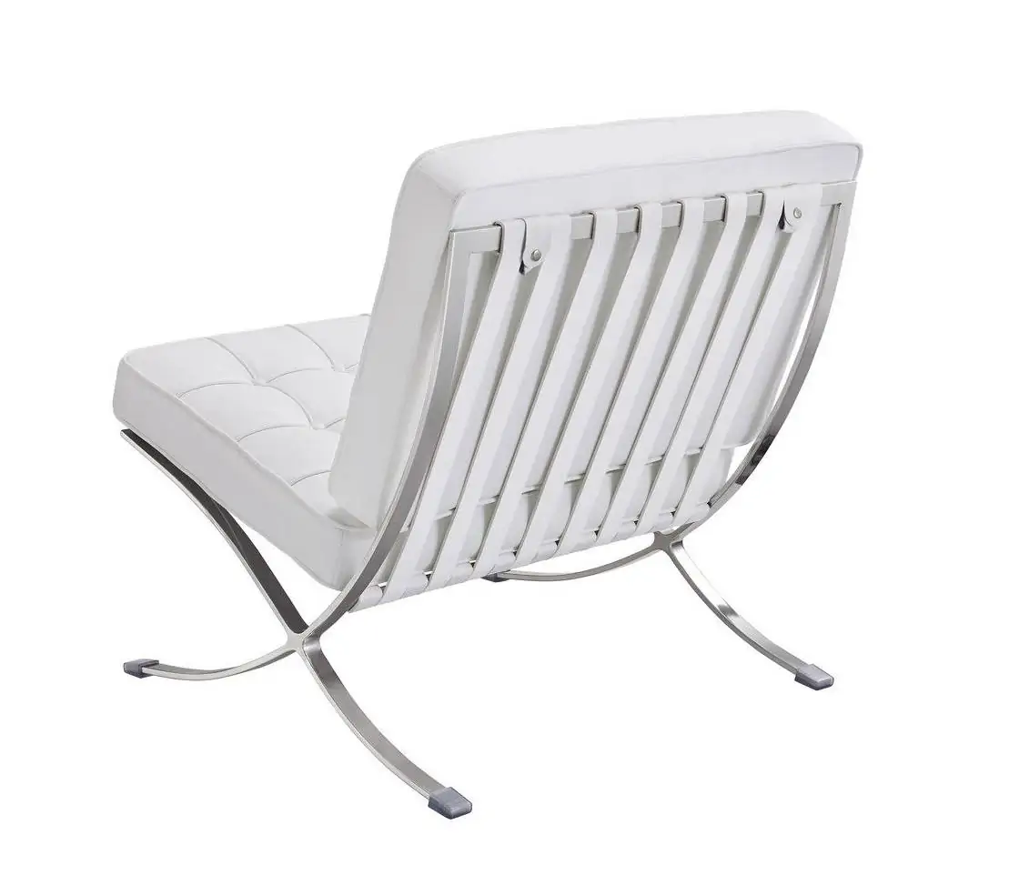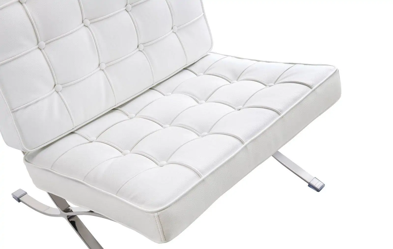 Белая обивка в сочетании с хромированными ножками подойдет для любого интерьера в современном стиле в светлых оттенках.