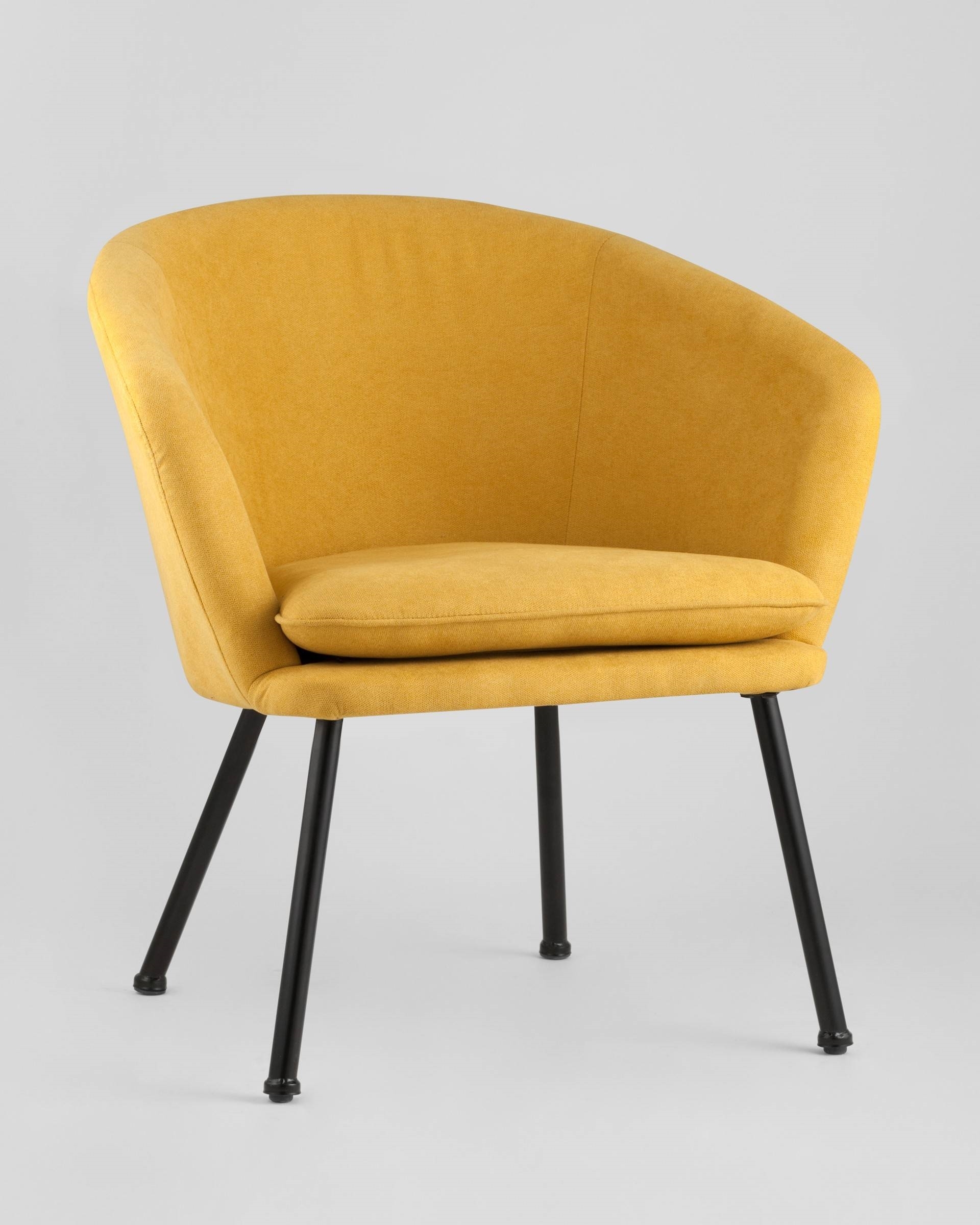 Широкая спинка плавно переходит в удобные подлокотники высотой 69,5 см от пола. Для дополнительного комфорта в кресле есть мягкое плотное сиденье. В качестве обивки используется ткань шенилл, плотный износостойкий материал с бархатистой структурой, приятный на ощупь. Металлический каркас добавляет устойчивости и выдерживает нагрузку до 120 кг. Ножки металлические черные.