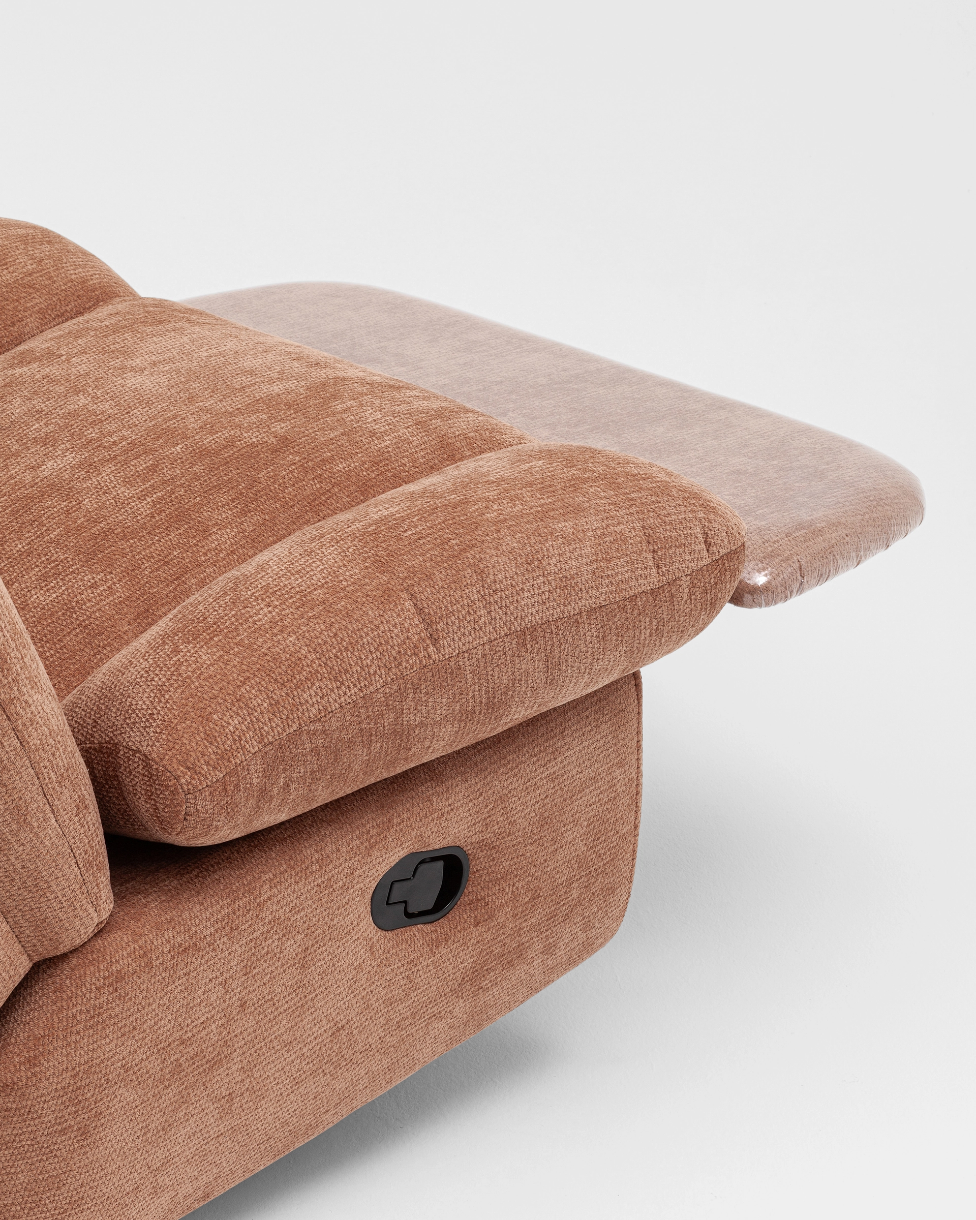 Кресло легко трансформируется: потяните за рычаг, встроенный в подлокотник, и подножие плавно поднимется. Спинку можно опустить в положениерелакс, просто откинувшись назад. Чтобы вернуться в исходное положение — усилением ног закройте изножье до щелчка.