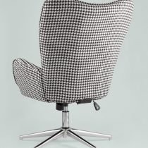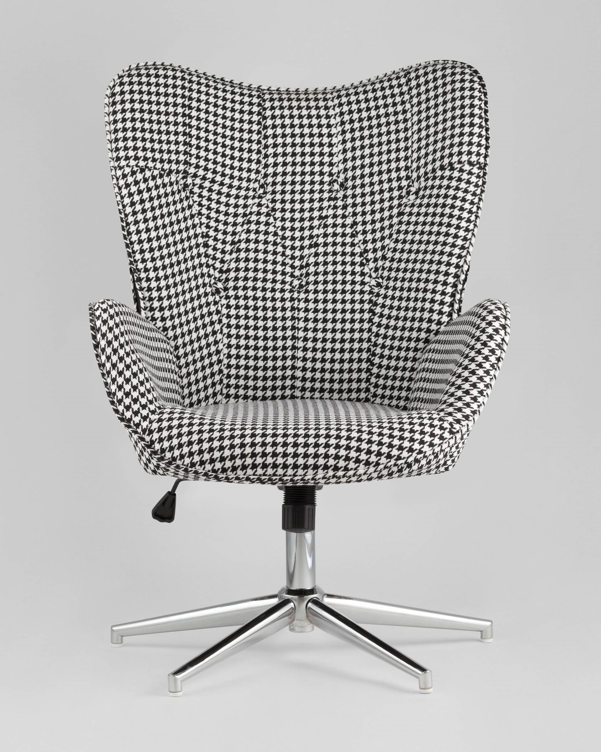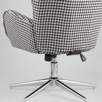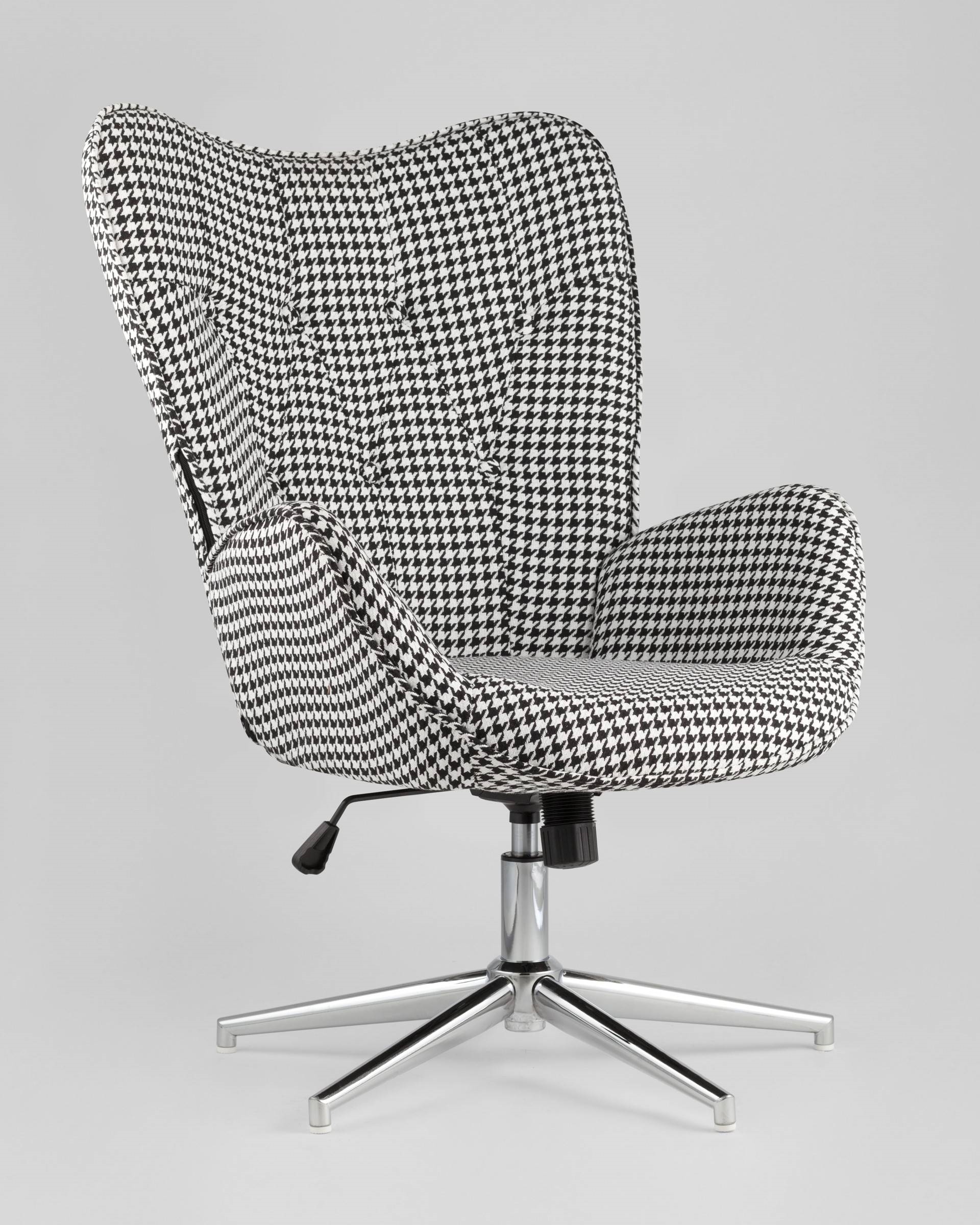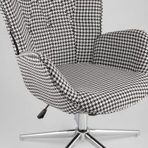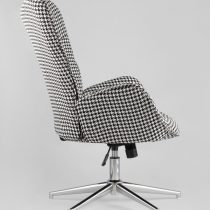 Мягкое сиденье с высокой поддерживающей спинкой анатомической формы подарит комфорт и уют. В качестве обивки используется прочная износостойкая ткань с точечным декором. Металлическая ножка регулируется по высоте и обеспечивает хорошую устойчивость. Удобные подлокотники добавят комфорта. Кресло прекрасно смотрится в гостиной или столовой зоне. Высота сиденья регулируется от 43,5 до 53,5 см. В зависимости от регулировки общей высоты кресла, высота подлокотников от пола составляет 61-71 см.