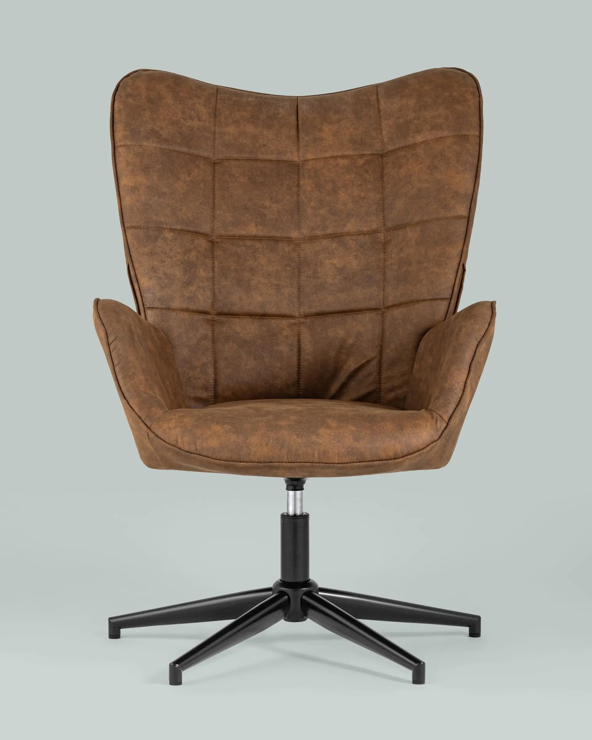 Мягкое сиденье с высокой поддерживающей спинкой анатомической формы подарит комфорт и уют. Пракрасно впишется в интерьер гостиной или столовой зоны. В качестве обивки используется искуственная замша – прочный и приятный на ощупь материал. Внутренняя часть спинки украшена геометричной строчкой в виде квадратов. Крестовина выполнена из металла в черном цвете и обеспечивает хорошую устойчивость. Удобные подлокотники и функция вращения добавят еще больше комфорта.