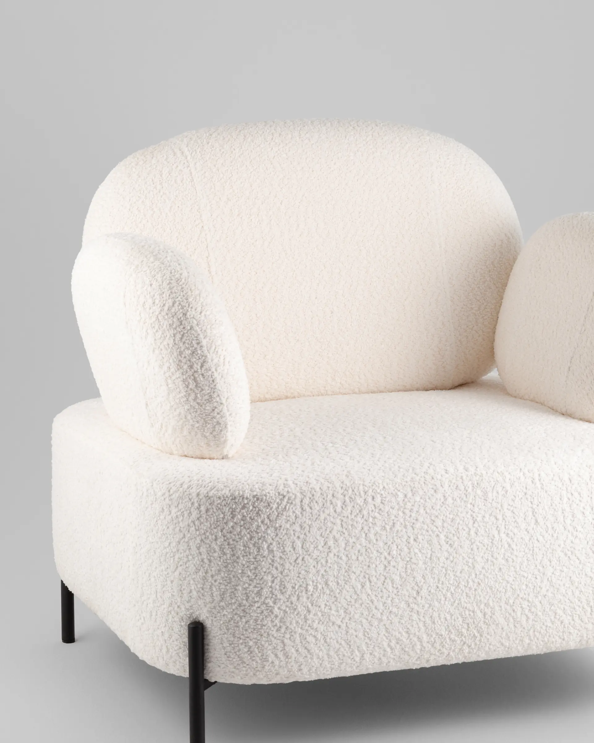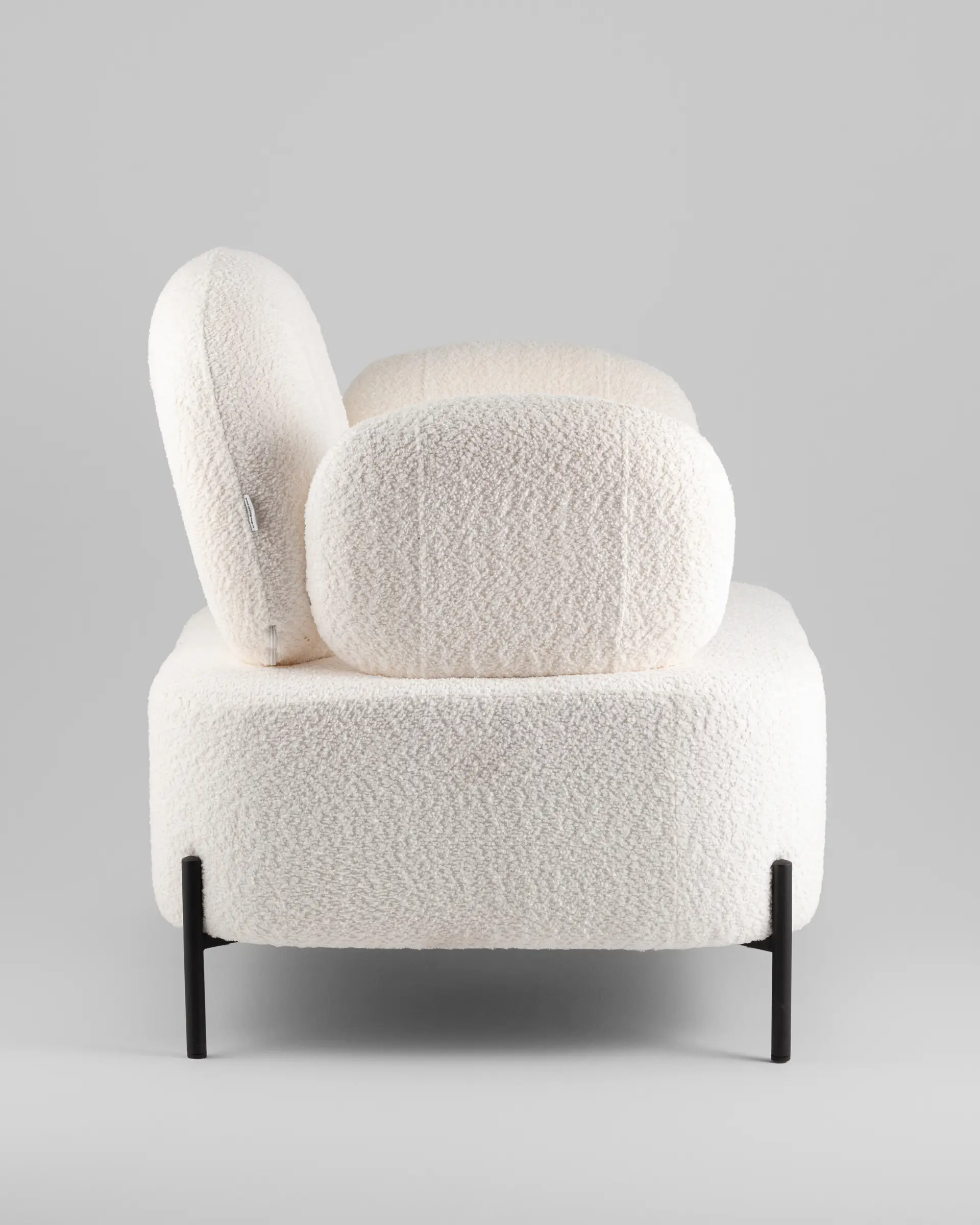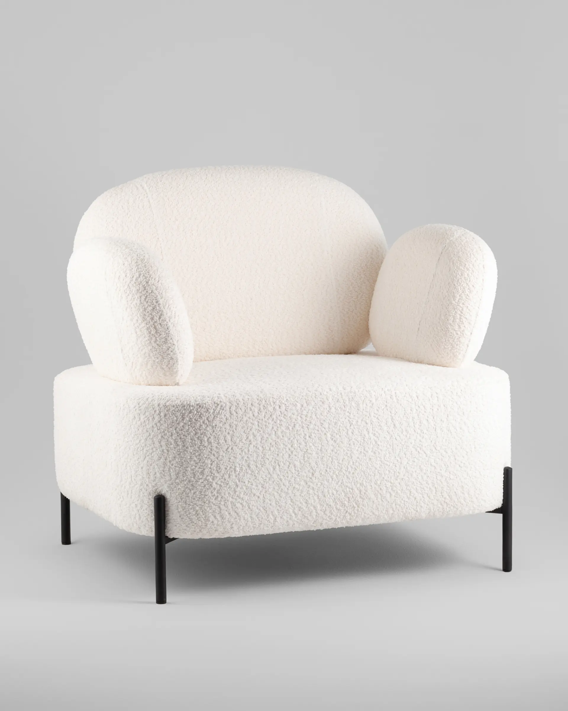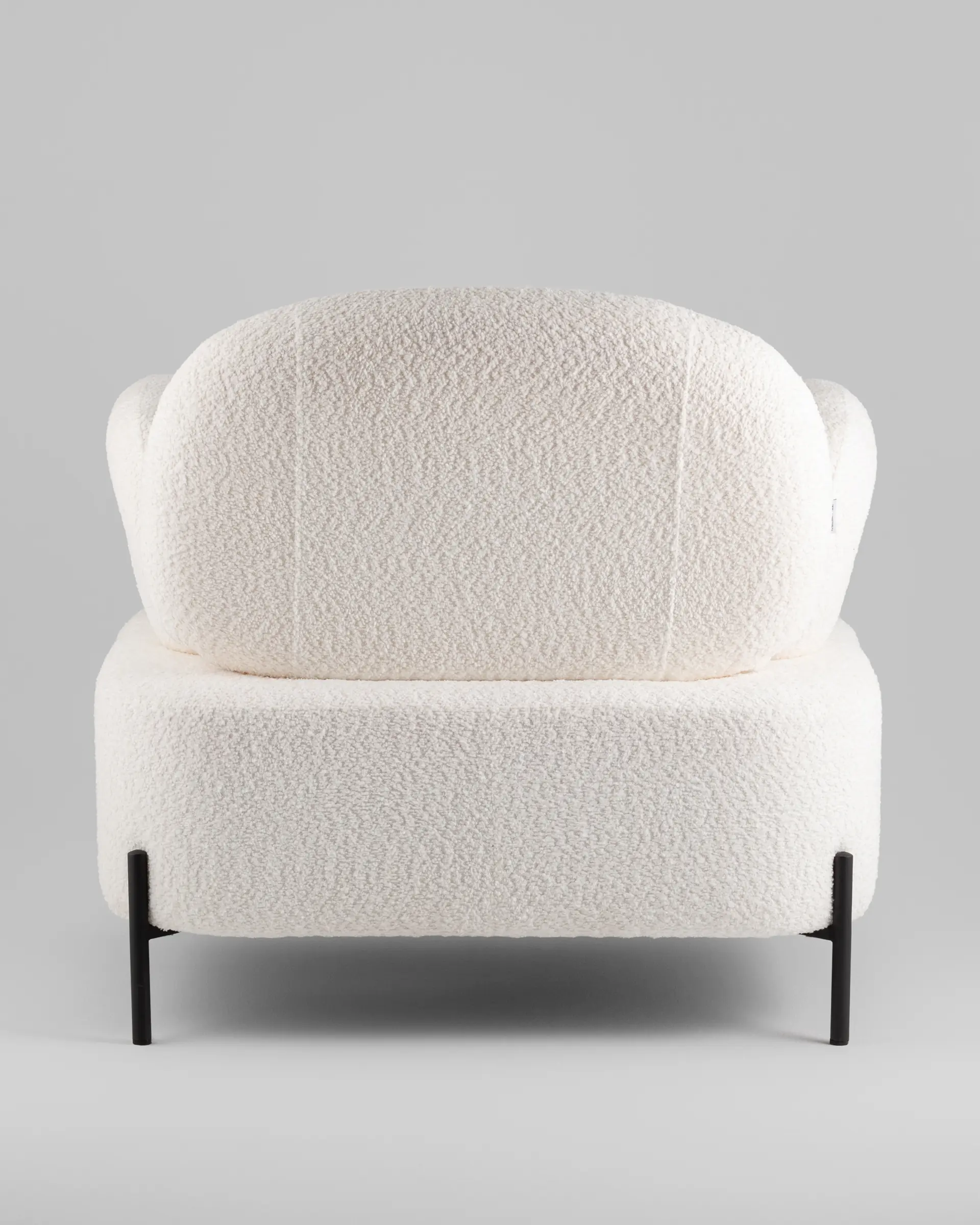 Мягкое кресло Кэнди имеет оригинальный стиль исполнения и способно стать частью любого современного интерьера. Эргономичный дизайн спинки и подлокотников обеспечит долгий и комфортный отдых. Обивка выполнена из простого в уходе букле – мягкого и нежного на ощупь. В качестве внутреннего наполнителя использован ППУ повышенной жесткости. Каркас металлический с максимальной допустимой нагрузкой до 110 кг. Ножки выполнены в черном цвете и оснащены специальными подпятниками, которые препятствуют скольжению и предотвращают царапанье напольного покрытия. Высота спинки от сидения 43 см.