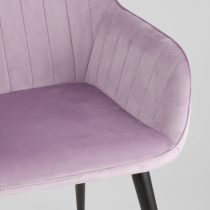 Яркое кресло с широким сиденьем и удобной эргономичной спинкой, декорированной вертикальной строчкой. Высокопрочная обивка из велюра. Металлический каркас выдерживает нагрузку до 120 кг. Высота подлокотников от пола составляет 61,5 см.