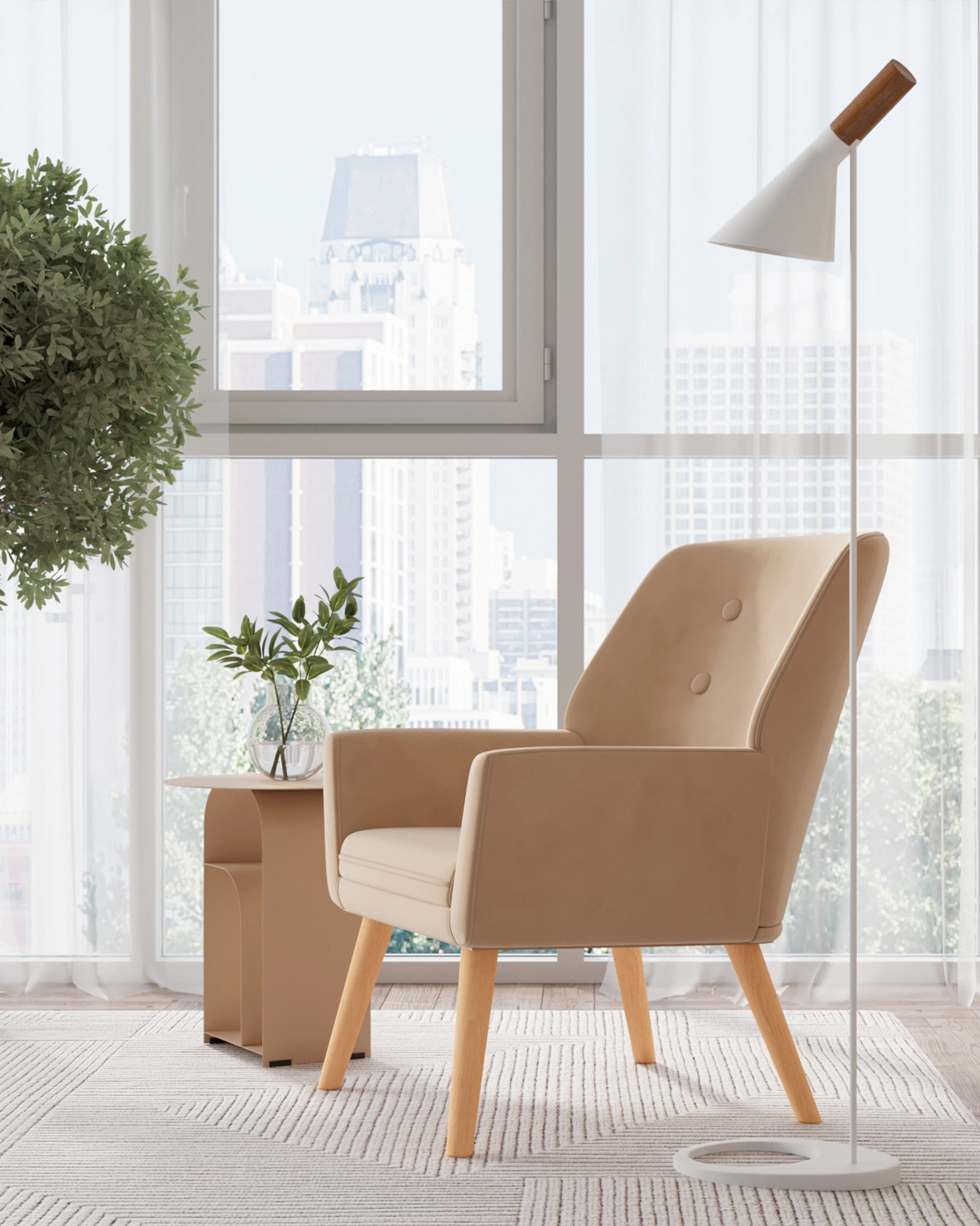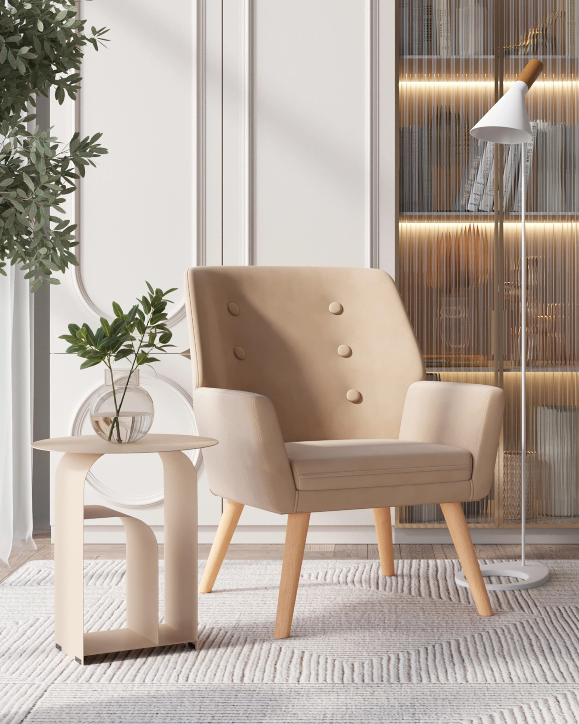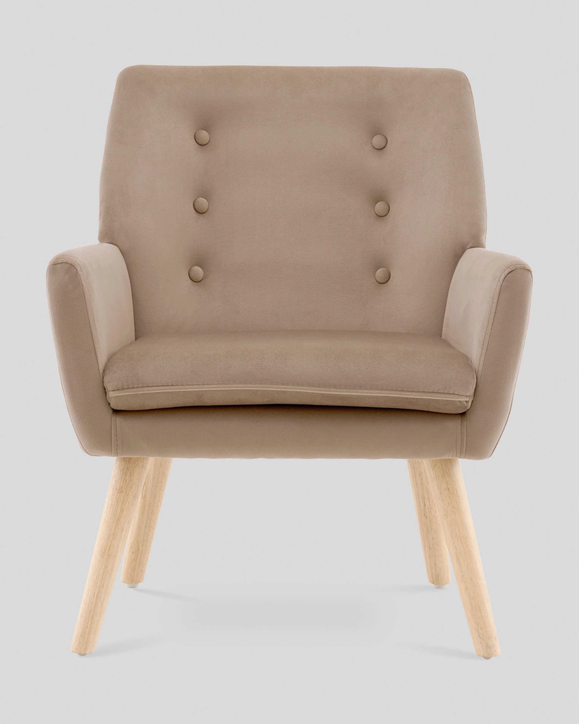 Широкая посадка, мягкое сиденье и спинка с акцентной стёжкой в виде пуговиц обеспечивают высокий уровень комфорта. Подлокотники дополнительно поддерживают руки, а оптимальная высота (79×64×68 см) подходит для различных зон отдыха.