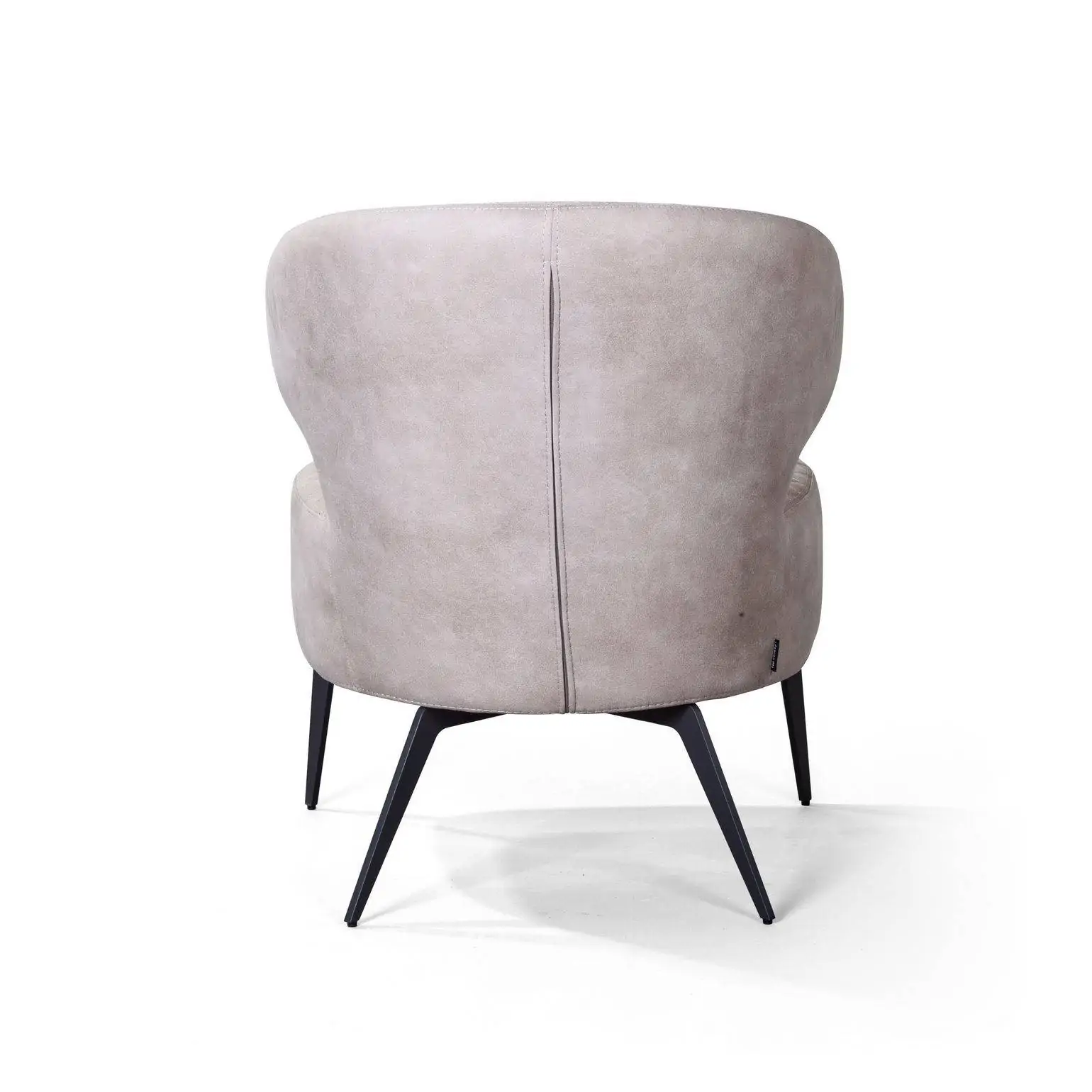 Изящные тонкие ножки завершают оригинальный силуэт кресла. Матовое серое покрытие металлических ножек создает иллюзию текстуры бетона, за счет чего они выглядят оригинально и революционно.