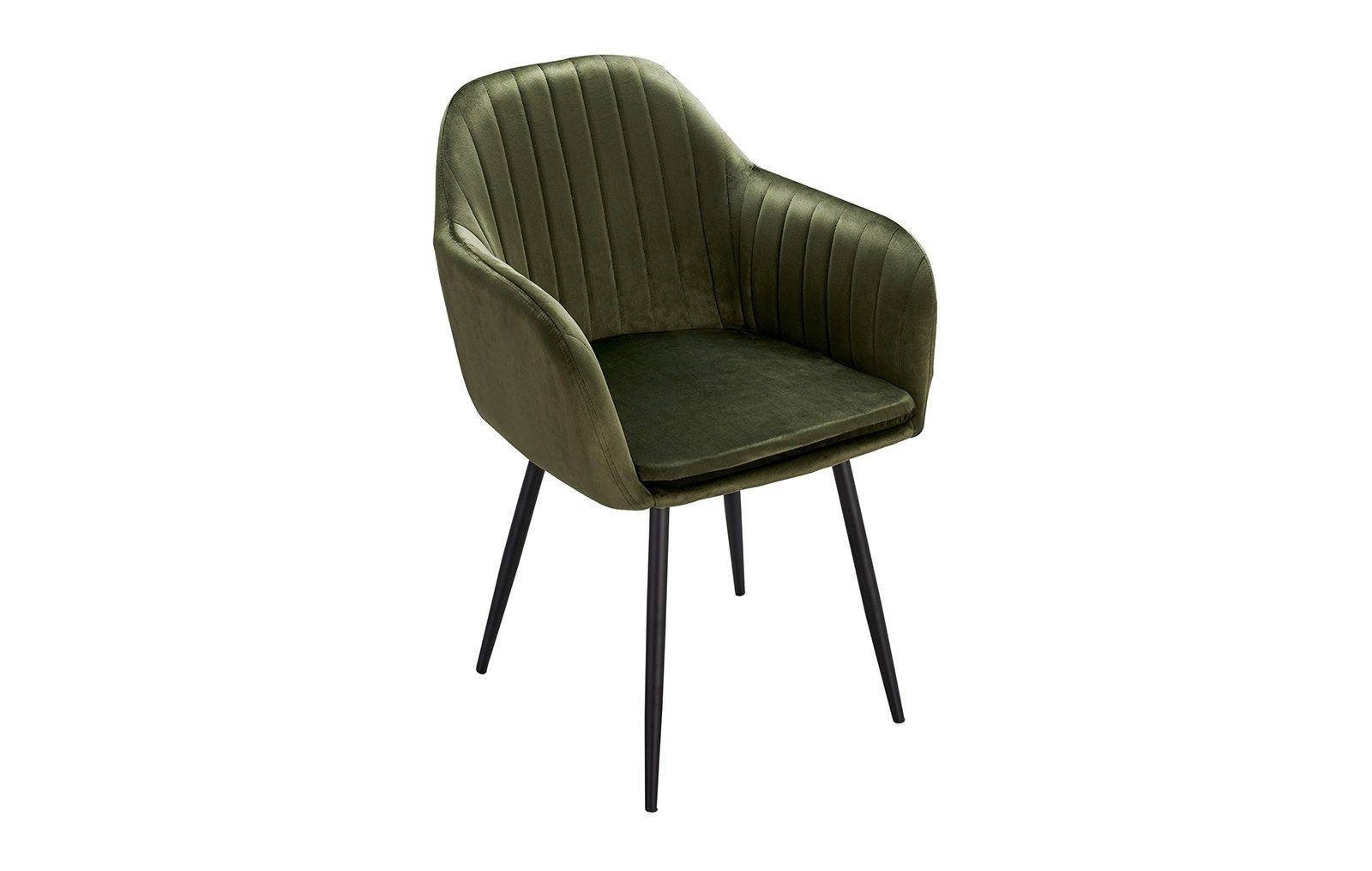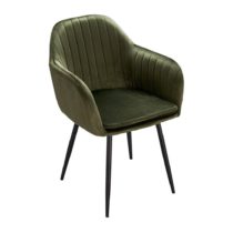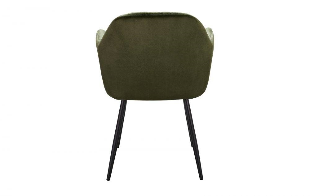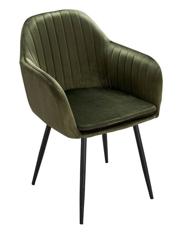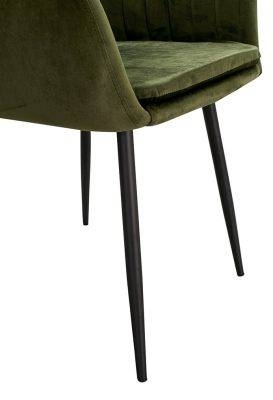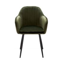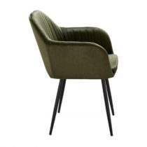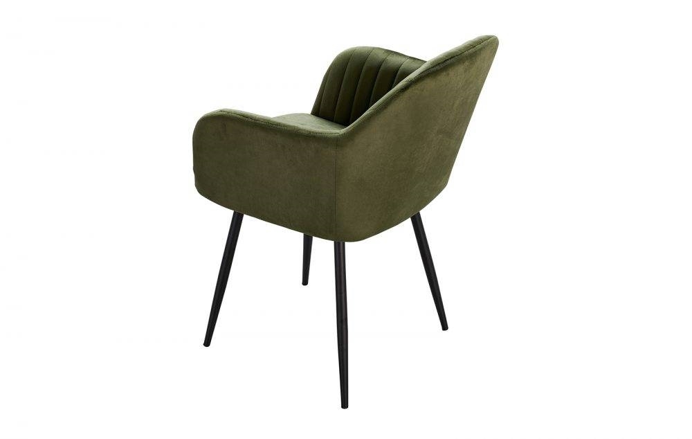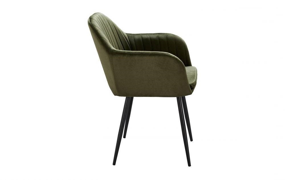 Стильное кресло, которое дополнит интерьер в современном стиле. Обивка выполнена из мягкого велюра. На спинке и подлокотниках с внутренней стороны имеется вертикальная прострочка. Ножки изготовлены из металла, покрытые черной краской.