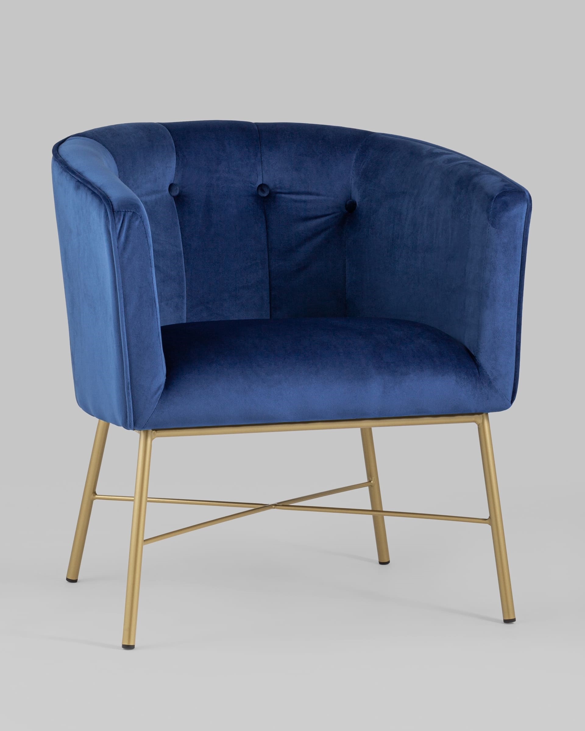 Современное кресло с подлокотниками и металлическими ножками. Обивка выполнена из прочного и износостойкого велюра. Широкая спинка, переходящая в подлокотники высотой 70 см от пола, и мягкое сиденье обеспечивает удобную посадку и уют. Украшает кресло декор на внутренней стороне спинки и металлический каркас в золотом цвете.