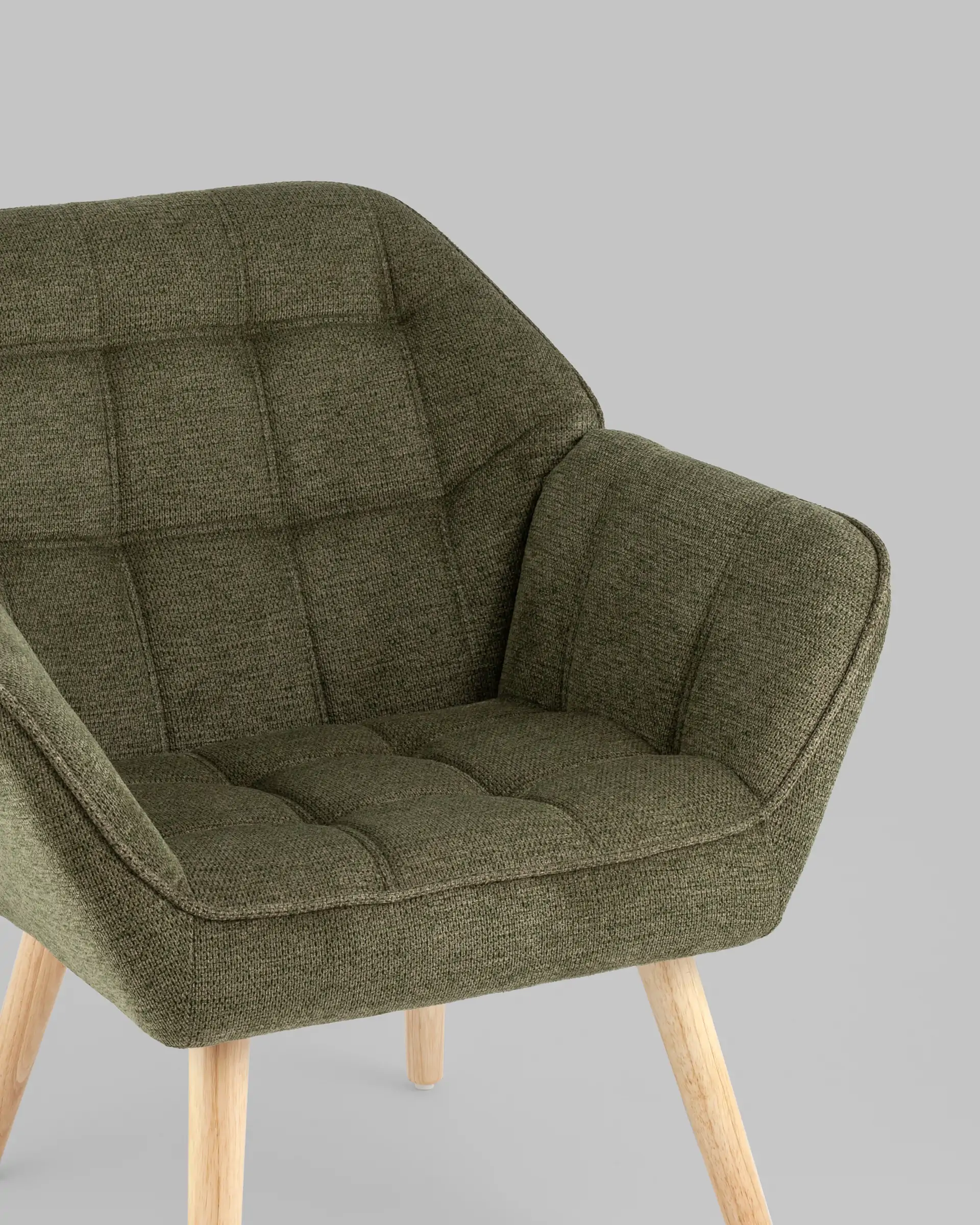 Оригинальное мягкое дизайнерское кресло с удобными подлокотниками. Ножки выполнены из массива гевеи. В качестве обивки используется износостойкая прочная ткань, которая не истирается и не линяет со временем. Кресло отличает толстая спинка и сиденье, украшенные красивой строчкой, которая добавляет креслу интересной фактуры. Каркас выдерживает нагрузку до 120 кг.