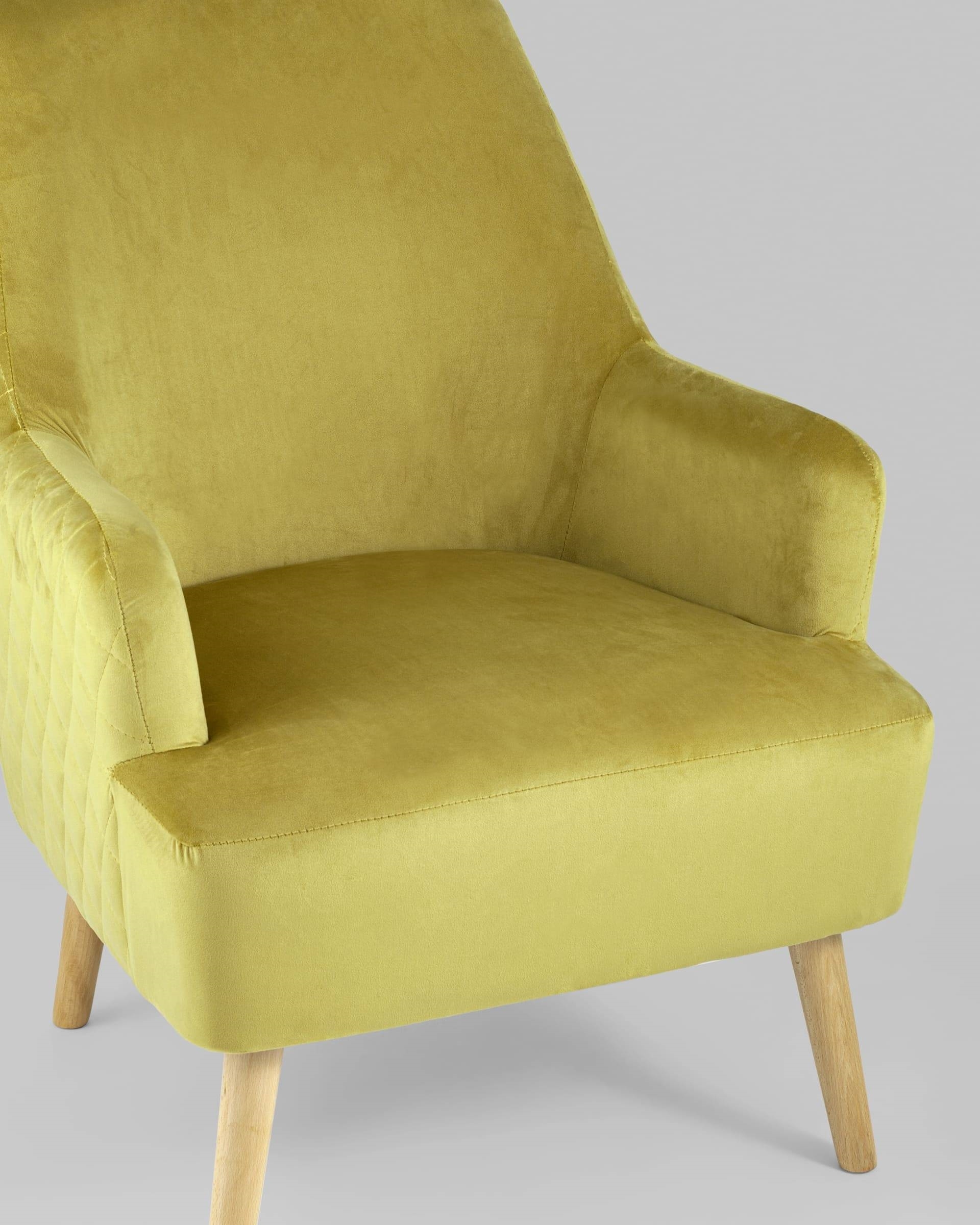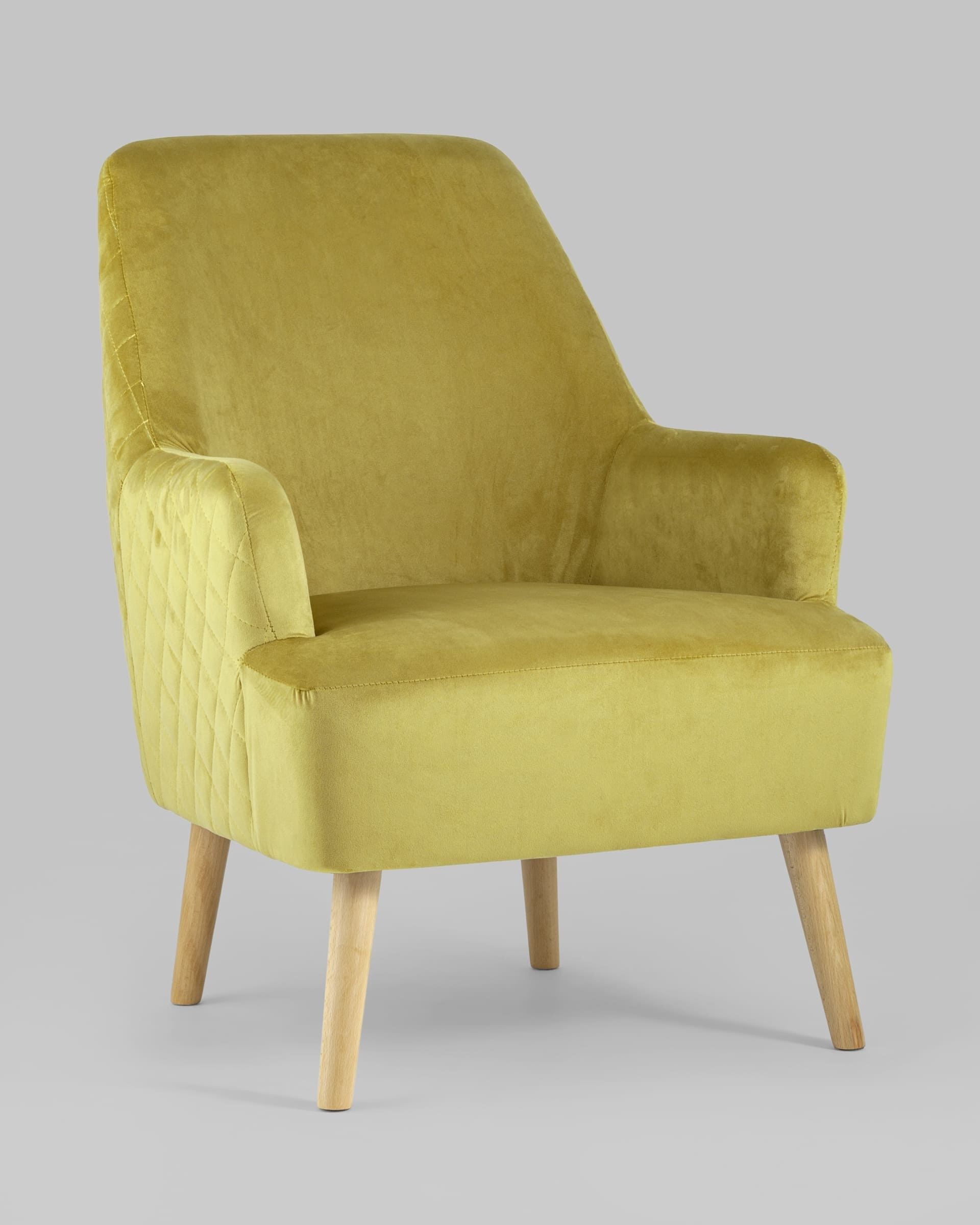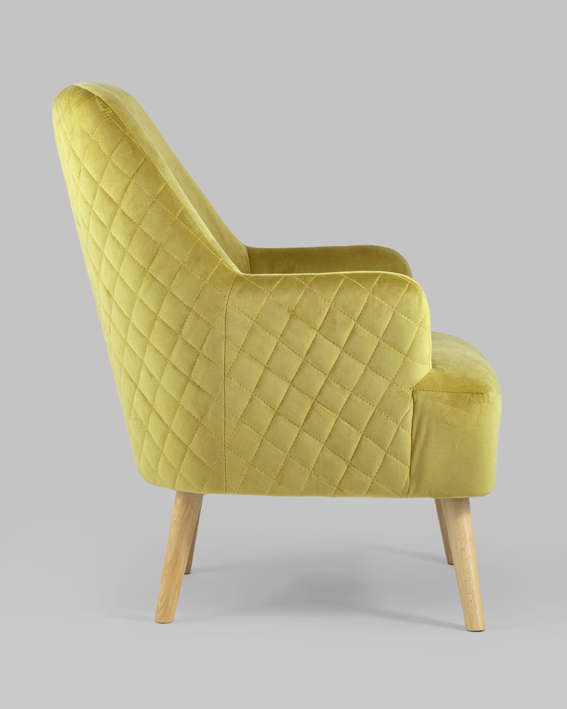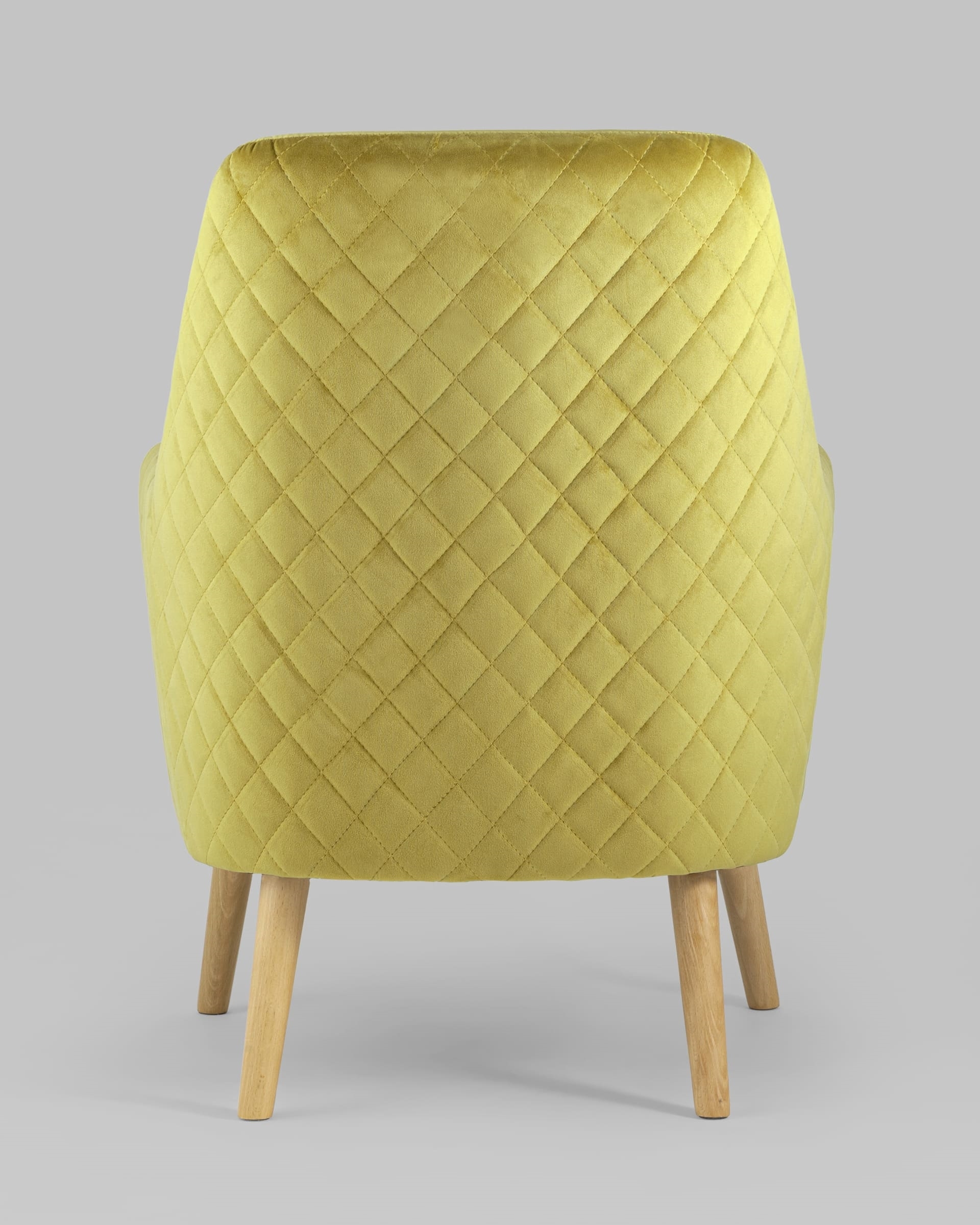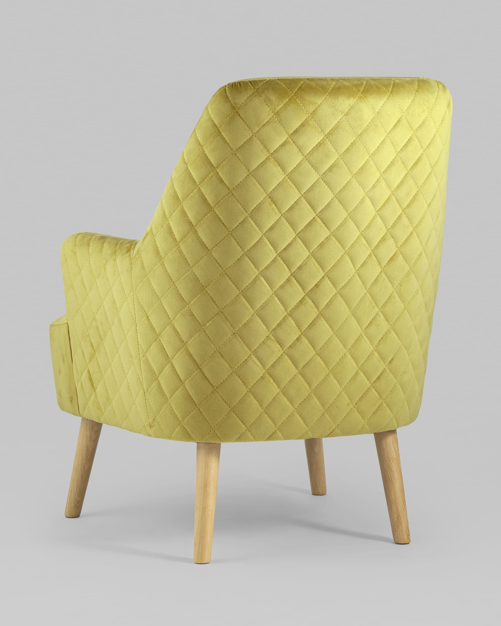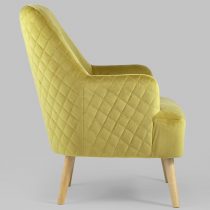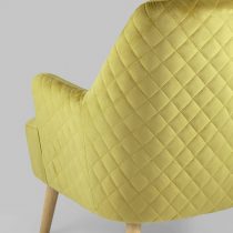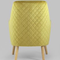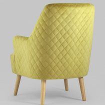 Широко расставленные ножки из массива дерева обеспечивают надежность и устойчивость конструкции. Удобная мягкая спинка, широкое сиденье, мягкие подлокотники. Обивка из мягкого велюра обеспечивает комфорт и уют. Внешняя сторона обивки спинки и подлокотников имеет ромбовидную стежку.
