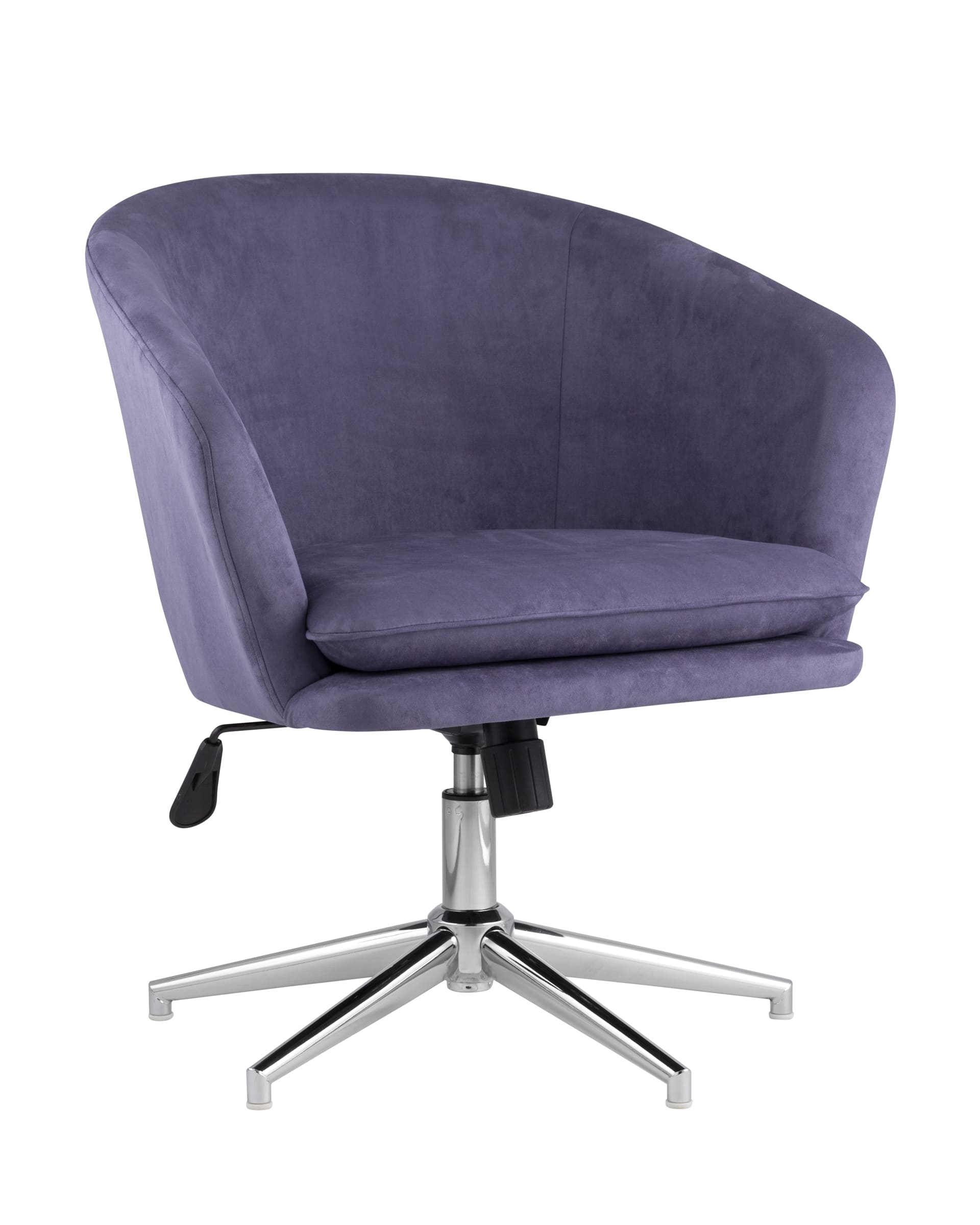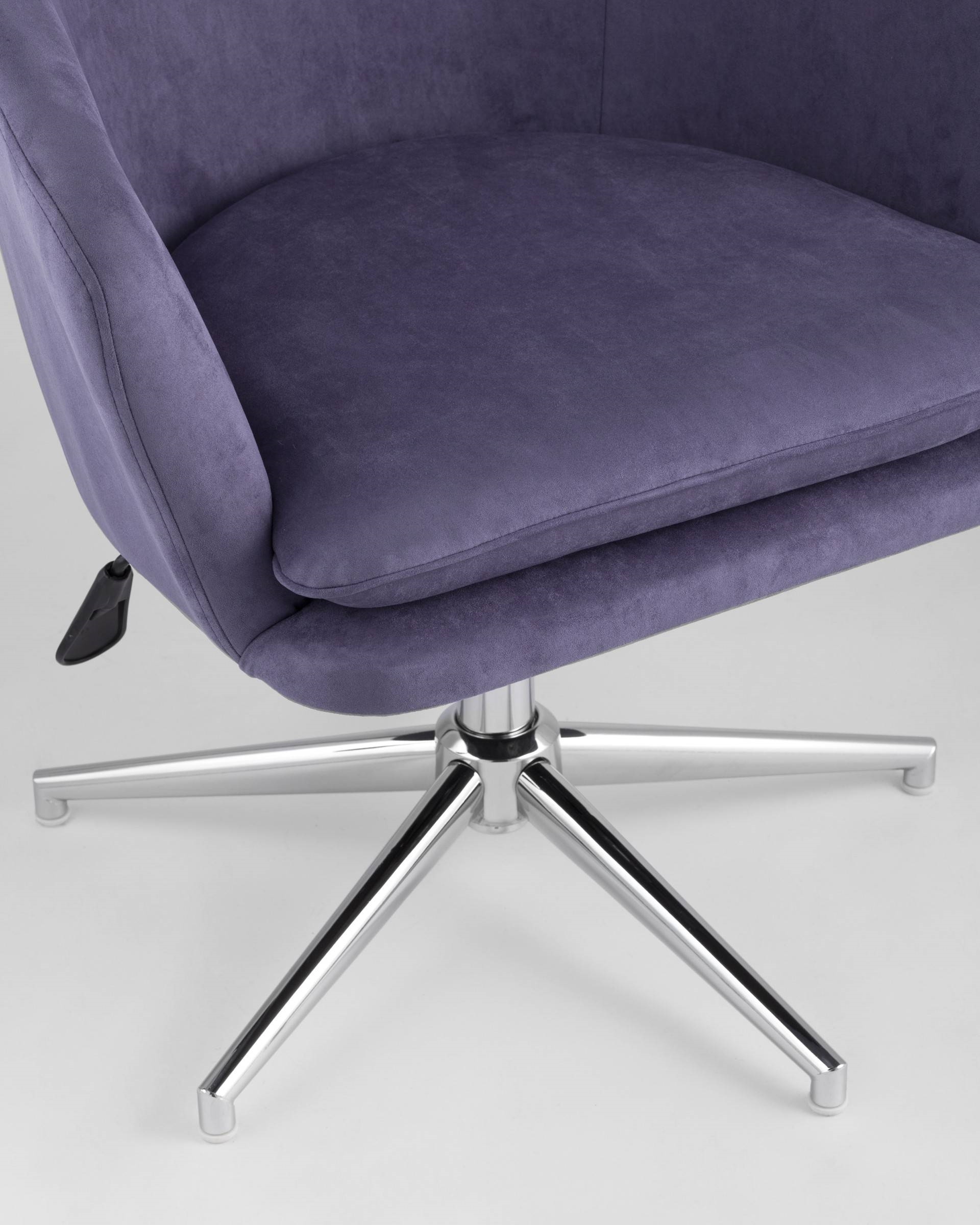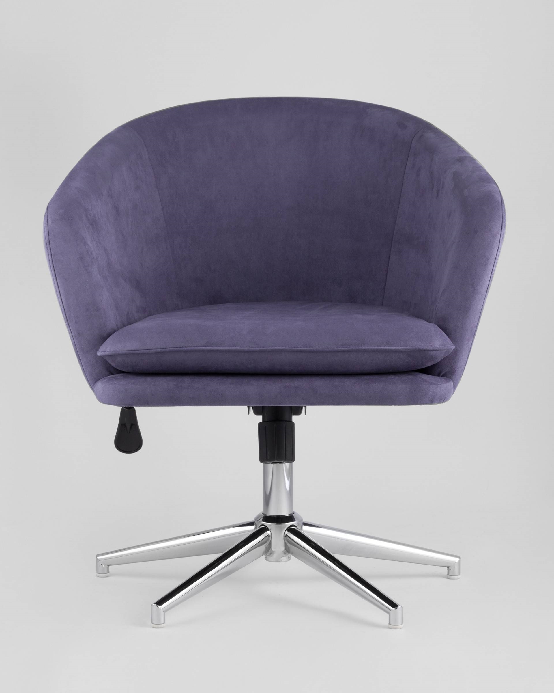 Кресло с механизмом регулировки по высоте. Металлический каркас выдерживает нагрузку до 120 кг. Обивка выполнена из прочной износостойкой замши, устойчивой к повреждениям. Легко поддается чистке. Сиденье и спинка широкой формы эргономичные и комфортные в повседневном использовании.