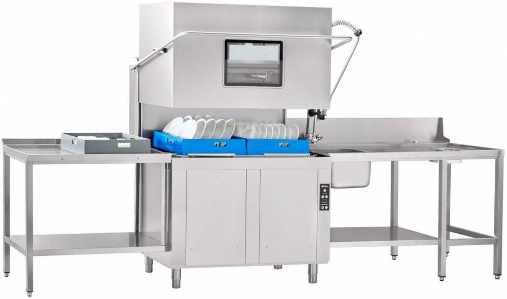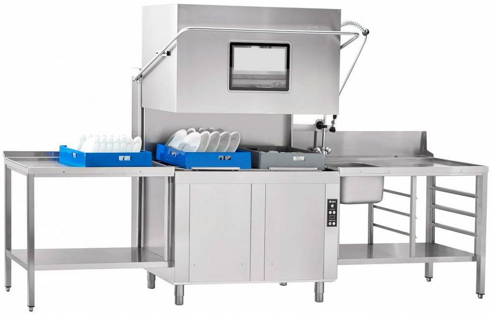 Посудомоечная машина купольного типаAbat МПК-1400Кприменяется на предприятиях общепита для мытья с жидкими моющими и ополаскивающими средствами большого количества посуды (тарелки, стаканы, чашки, столовые приборы, подносы).