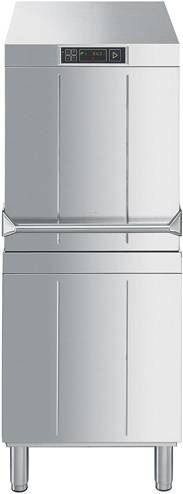 Машина имеет корпус прямоугольной формы, он и все контактирующие с водой детали выполнены из нержавеющей стали. Конструкция агрегата состоит из купола, моечного отделения и секции размещения электрооборудования. Купол закрывает моечное отделение и перемещается вверх по вертикальным направляющим с помощью ручки. Он имеет окошко для визуального контроля процесса мойки. В моечном отделении находятся ванна с ТЭНом, фильтрами и датчиком температуры, держатель кассет с посудой, моющие и ополаскивающие разбрызгиватели, трубка перелива, воздушная камера и лампа освещения. В расположенном снизу отделении установлено электрооборудование: бойлер, насосы, монтажный щит и электромагнитный клапан. Сбоку на передней стенке корпуса находится пленочная клавиатура для управления процессом мытья. Машина стоит на регулируемых по высоте ножках.