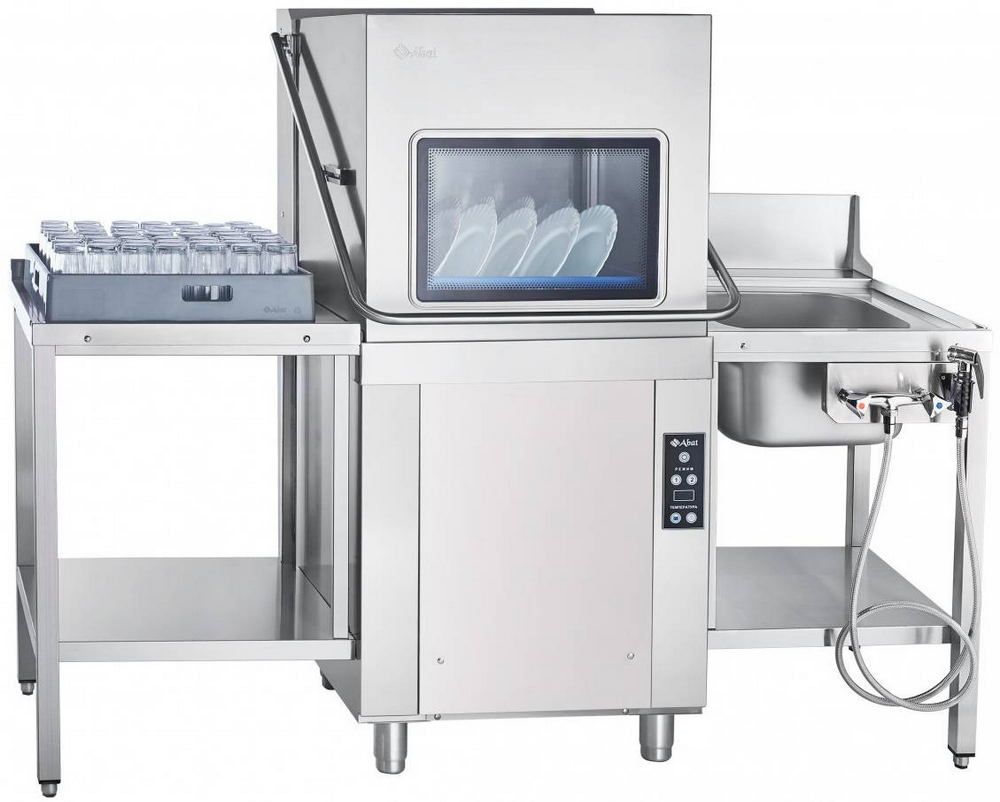 Купольная посудомоечная машинаAbat МПК-1100Крассчитана на использование на предприятиях общепита со средним количеством клиентов. Она применяется для мытья с жидкими моющими и ополаскивающими средствами тарелок, стаканов, чашек, столовых приборов, подносов.