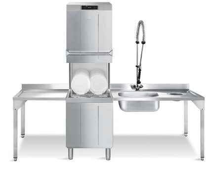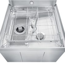 Фронтальная посудомоечная машина Smeg HTY520D имеет конструкцию и рукава из нержавеющей стали, цельнотянутую ванну и помпу слива со встроенным фильтром. Предназначена для мойки тарелок, приборов, стеклянной посуды, чашек, противней, кастрюль. Загрузка кассет 500х500мм.