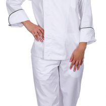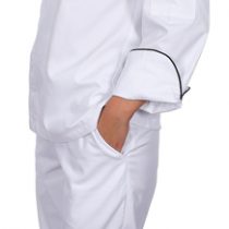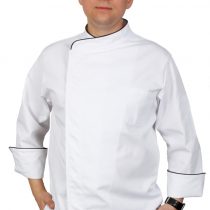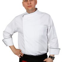 Куртка шеф-повара премиум белая рукав длинный с манжетом (отделка черный кант) [00012]