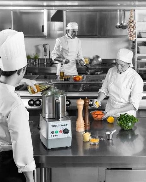 Куттер Robot CoupeR 4 V.V.– профессиональное электромеханическое оборудование для небольших заведений питания: кафетериев, столовых или баров. Предназначено для измельчения мяса, замеса дрожжевого теста влажности до 60 %, дробления твердых продуктов, приготовления соусов и заправок. Опционно: нож для теста с крупными зубьями и с мелкими для зелени.