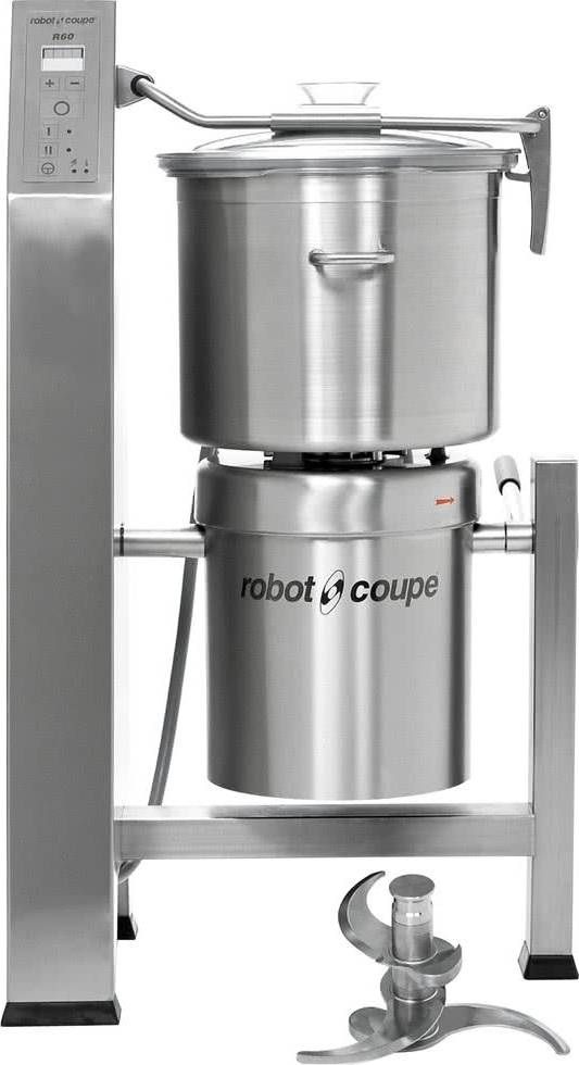 Куттер Robot CoupeR60– самая крупногабаритная и производителя модель напольных куттеров от европейского бренда. Универсальное электрооборудование для производства множества операций: перемешивания, дробления, измельчения, замешивания теста разной консистенции. Комплектуется одним ножом, но опционно возможно приобретение еще двух моделей: с крупной и мелкой насечкой на лезвиях.