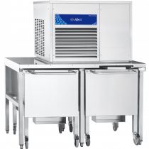 Аппарат снабжен системой защиты. Он автоматически отключается при отсутствии подачи воды, перегрузке мотора-редуктора, утечке хладагента и переполнении ледяного бункера.