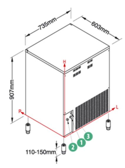 - температура потребляемой воды +3…+32 °С, расход воды на кг продукта – 2,5 л;