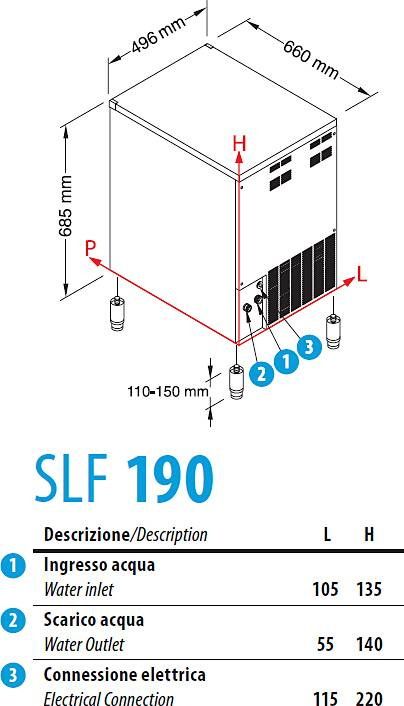 Льдогенератор NTFSLF 190 A– оборудование для производства гранулированного льда, используемого для рыбных прилавков Fish-маркетов, супермаркетов и рынков, подачи холодных супов, некоторых закусок и напитков в ресторанах и кафе, а также в медицине, SPA-салонах, на различных производствах, в гостиничном бизнесе. Отличается крайне экономичным потреблением воды, санитарной и экобезопасностью, соответствием директиве RoHS.
