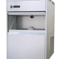 Модель имеет корпус прямоугольной формы, изготовленный из нержавеющей стали и снабженный ножками с регулировкой по высоте. Сверху в нем находится льдообразующий механизм, а снизу расположен холодильный агрегат. Бункер для готового льда встроен в центральную часть корпуса. Он оборудован крышкой, которая при открывании прячется внутрь. Над крышкой установлена панель управления с кнопкой пуска и индикаторами работы прибора.