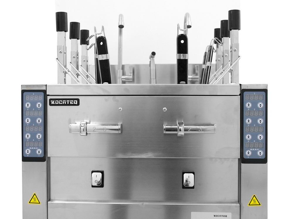 • Электронная панель управления с 3 таймерами на каждую ванну для программирования времени приготовления от 59 секунд до 99 минут и электронным термостатом для установки температуры воды;