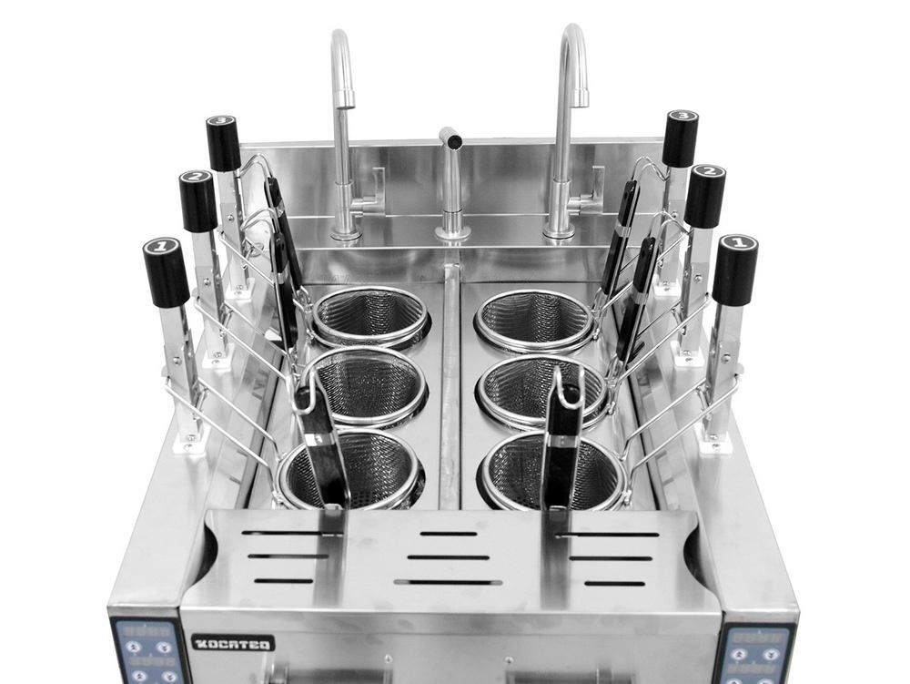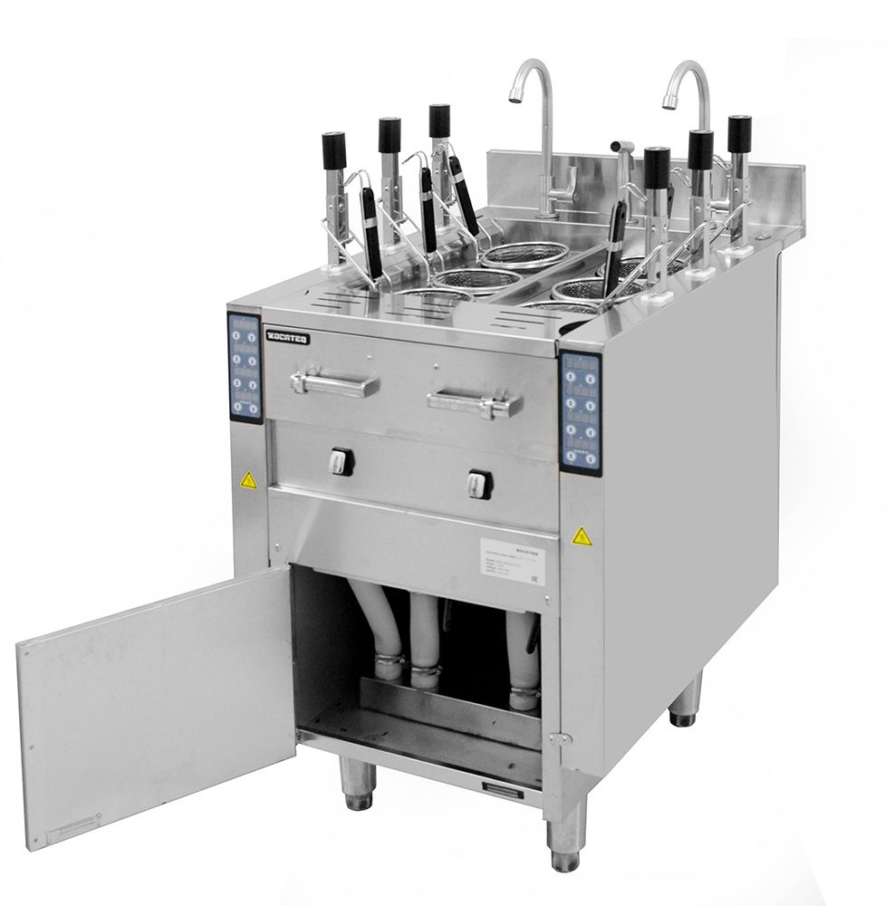 Макароноварка электрическая Kocateq ESBLL540CAS ECOпредставляет собой напольную макароноварку, предназначенную для оснащения торговых точек, пунктов общественного питания. Аппарат предназначен для варки макаронных изделий, вареников, пельменей. В конструкции предусмотрен кран для заполнения ванн водой. Панель управления установлена на фронтальной части. В конструкции предусмотрено 6 корзин с функцией автоматического опускания и поднимания.