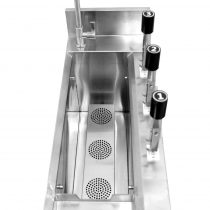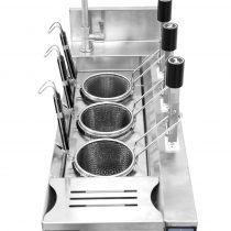 - Автоматическое опускание и поднимание 3 порционных корзин диаметром 13,5 см и глубиной 15 см с термоизолированными ручками и зацепами;