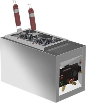 Макароноварка KocateqESBLL540CA— тепловое оборудование профессионального типа. Назначение — варка полуфабрикатов из теста, начиная от макарон, заканчивая варениками и пельменями. Работает от электричества. Устанавливается на пол. Комплектуется одной ванной и шестью корзинами. Корпус и емкость для воды нержавеющие. Предусмотрено подключение к водопроводу/канализации.