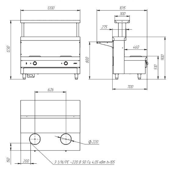 • предназначен для расположения баков и кастрюль объемом до 50 л,