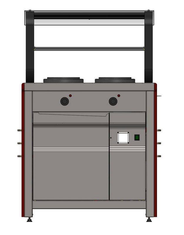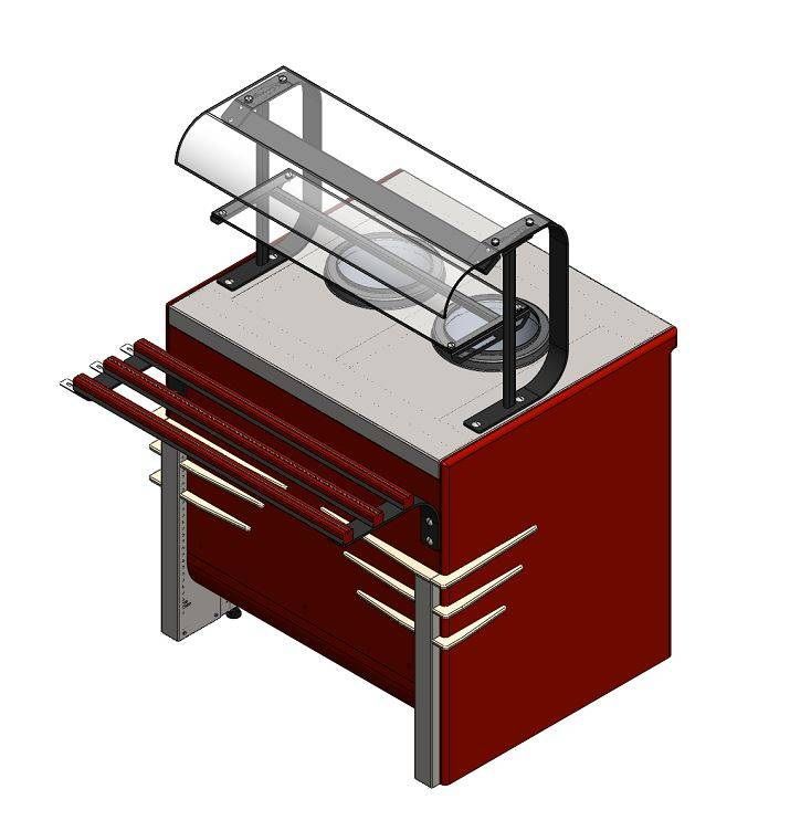 - Со стороны персонала в мармите есть ниша для инвентаря и розетка с защитной крышкой;
