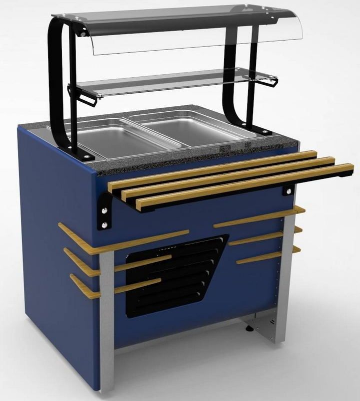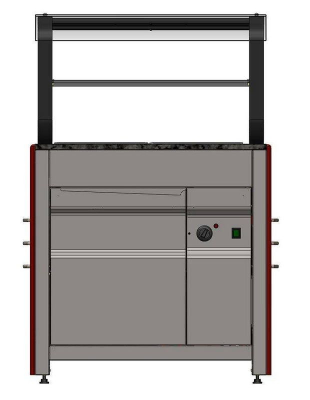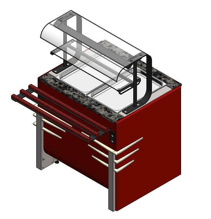 - Со стороны персонала в мармите есть ниша для инвентаря. Как дополнительная опция ниша может быть снабжена полкой и створчатой дверкой;