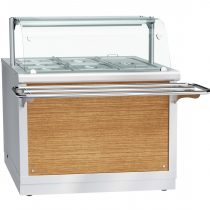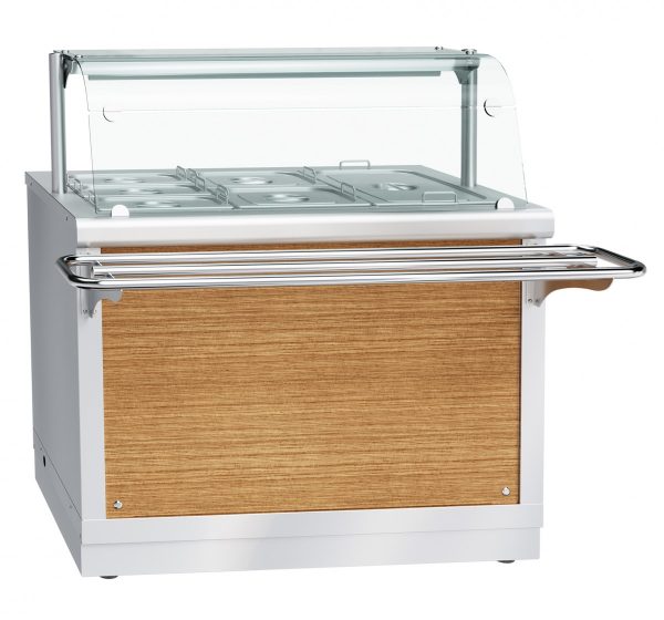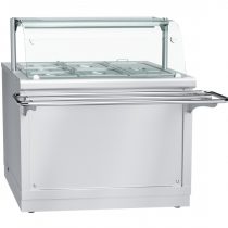 Витрина оснащена 2 ТЭНами и ванной для установки гастрономических емкостей. Предусмотрена система нагрева парового типа. В верхней части корпуса установлена стеклянная полка. Дополнительно предусмотрен нейтральный шкаф, предназначенный для хранения инвентаря.