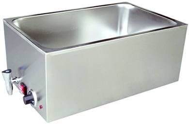 Предназначен для работы внутри помещения. Резервуар под водяную баню наполняется вручную. Имеет клапан слива воды. Полезная ёмкость GN 1/1. Перегрев блюд исключён. Имеет конструкцию надёжно противостоящую опрокидыванию.