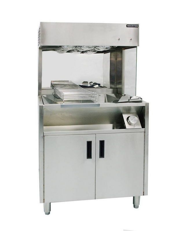 Мармит KocateqDH100EFF– передвижное тепловое оборудование. Колеса прочные, износостойкие. Маневренность колес высокая. Корпус – нержавеющая сталь. Качественно хранит предварительно обжаренные в раскаленном масле продукты. Месторасположение нагревательных ламп – верхняя часть витрины. Необходимость в дополнительной покупке солонки и совочка для чипсов отсутствует, они поставляются в комплекте.