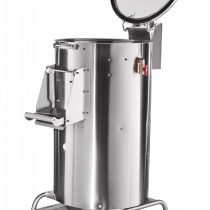 Аппарат отличается высокой прочностью. Корпус произведен из прочной полированной нержавеющей стали с классом влагозащиты IP23. Работает модель на базе мощного мотора с закрытой конструкцией. На корпусе установлена прозрачная стеклянная крышка. Для запуска картофелечистки достаточно повернуть регулятор таймера.