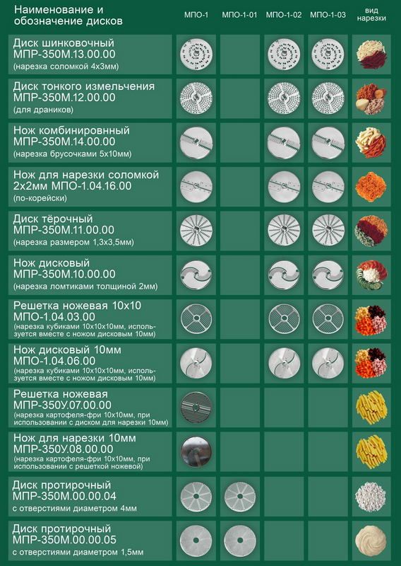 • диск шинковочный (соломка) 4х3 мм;