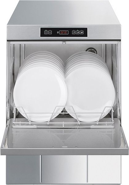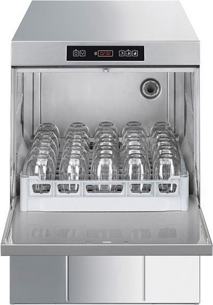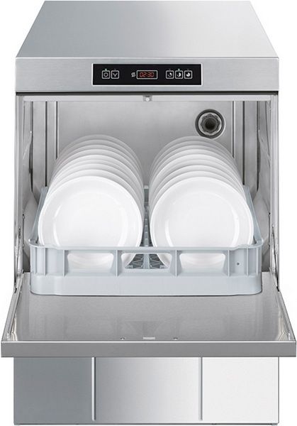 Машина посудомоечная с фронтальной загрузкой SMEG SPD503— предназначена для мытья всех типов посуды: тарелок, чашек, стаканов, столовых приборов, а также для мытья противней и гастроёмкостей GN 1/1 (требуется приобретение кассеты WB50T02). Рекомендуется к применению на предприятиях общественного питания всех типов.
