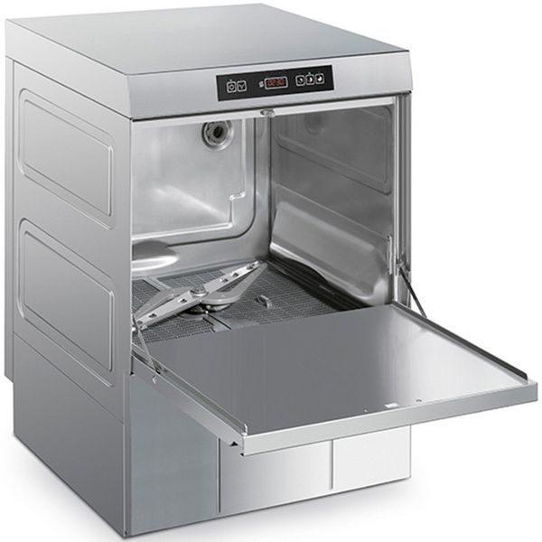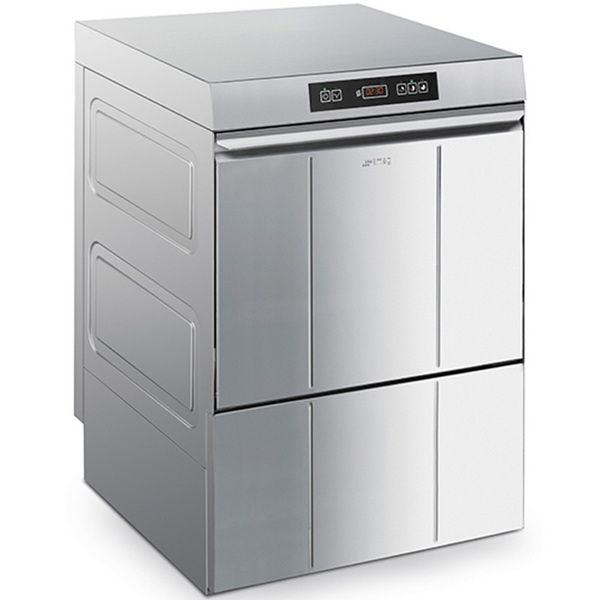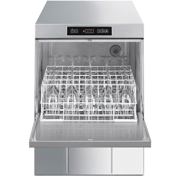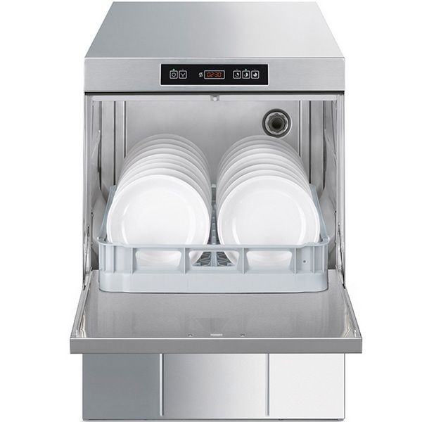 Машина посудомоечная с фронтальной загрузкой SMEG SPD505Sиспользуется на предприятиях общественного питания и торговли для мойки столовых приборов, тарелок, стаканов, чашек и другой посуды.
