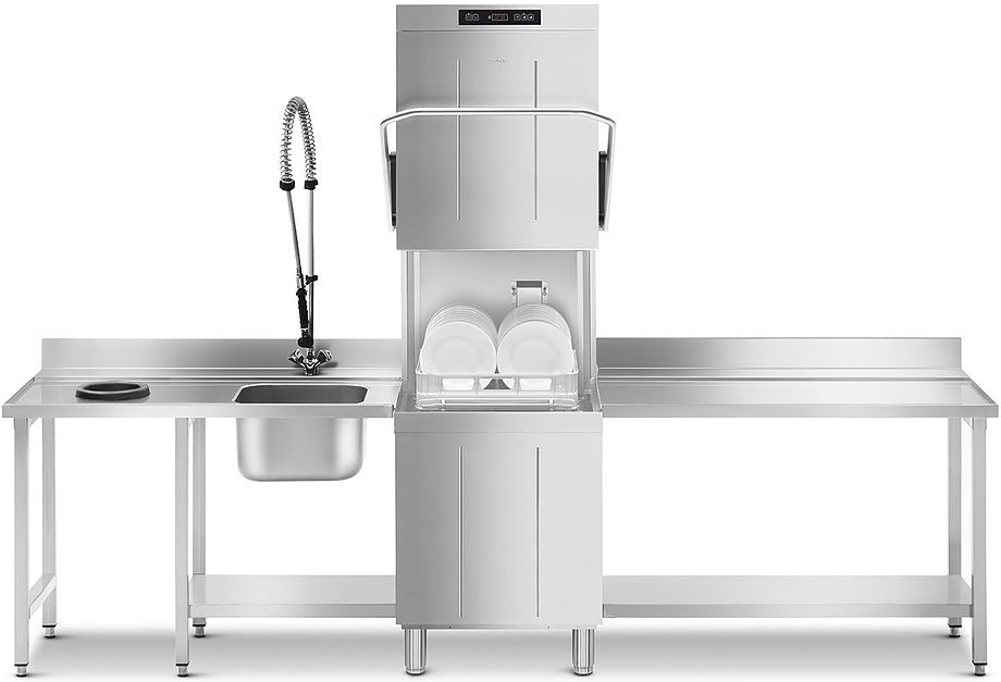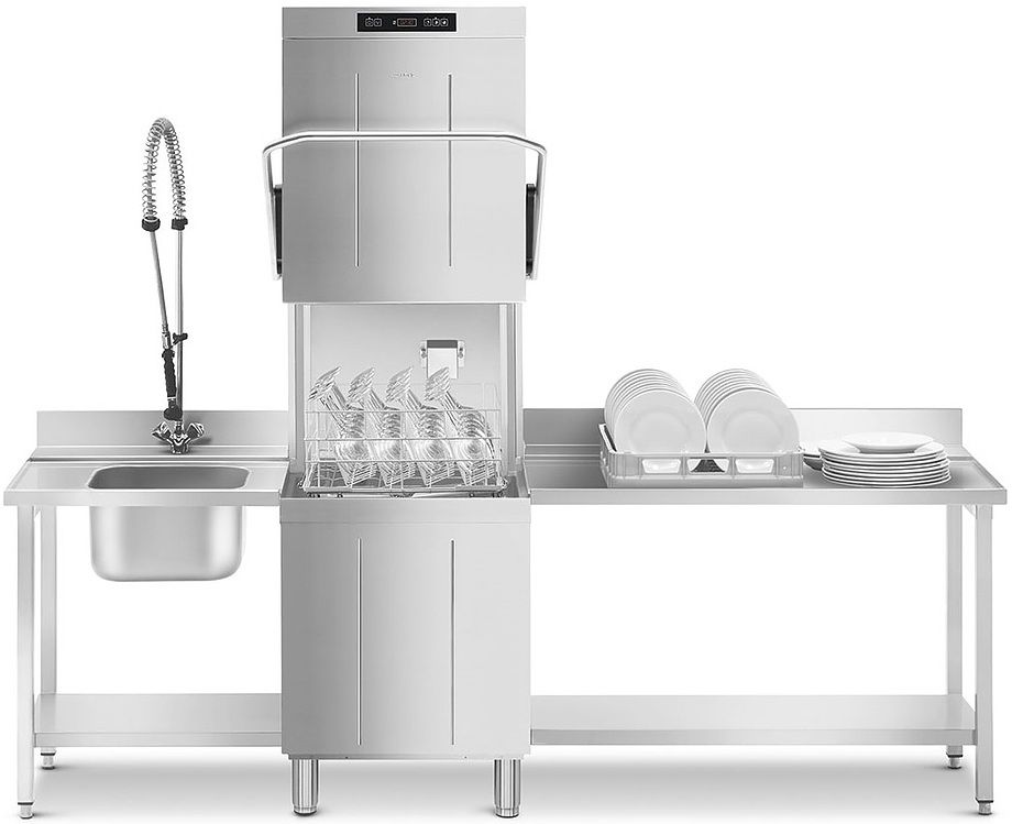 SMEG SPH503представляет собой купольную посудомоечную машину. Оборудование относится к профессиональному классу, принадлежит к серии Ecoline. Оно отлично подходит для использования в сфере общественного питания, торговых точек, может использоваться для мытья посуды, столовых приборов, чашек, стаканов и так далее. В конструкции предусмотрена электронная система управления, опорные ножки регулируются по высоте. Корпус, ополаскивающие и моющие рукава произведены из нержавеющей стали марки AISI304.