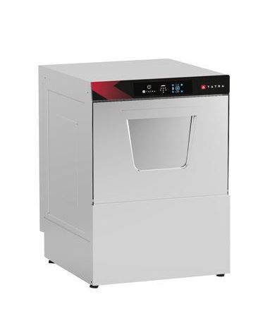Tatra TW.F50+DR+DD Touchпредставляет собой фронтальную посудомоечную машину. Модель относится к профессиональному классу, предназначена для мытья посуды, кухонных принадлежностей, чашек, стаканов, столовых приборов. Она подходит для оснащения торговых точек, пунктов общественного питания. В конструкции предусмотрена моечная и сливная помпа, откидная дверца со встроенной горизонтальной ручкой. На корпусе установлена панель управления Touch Screen. Моечная камера имеет сварное исполнение, изготовлена из нержавеющей стали. В комплект включены кассеты из ударопрочного сополимера полипропилена.