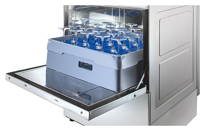 KROMO AQUA 50+DDE+PSпредставляет собой посудомоечную машину с фронтальной загрузкой. Модель оснащена дозаторами и помпой. Устройство рассчитано на оснащение торговых точек, пунктов общественного питания. Показатель производительности аппарата – 20-30 кассет в час.