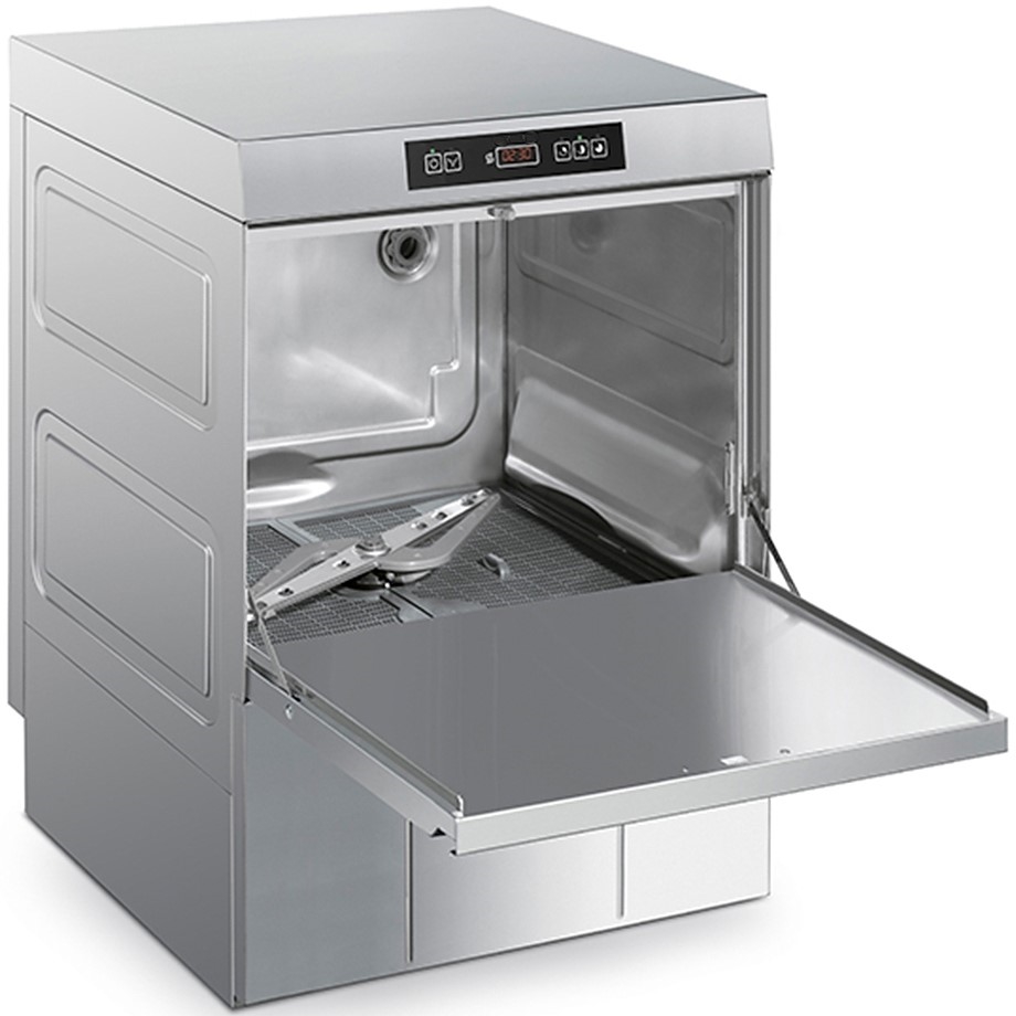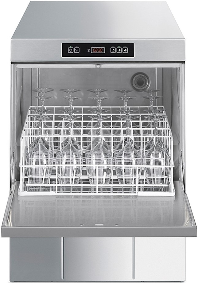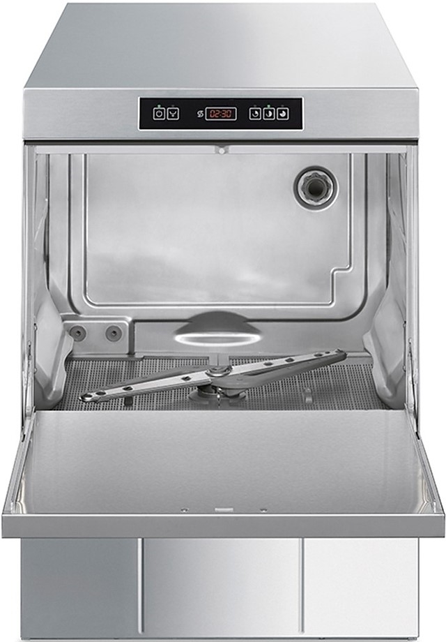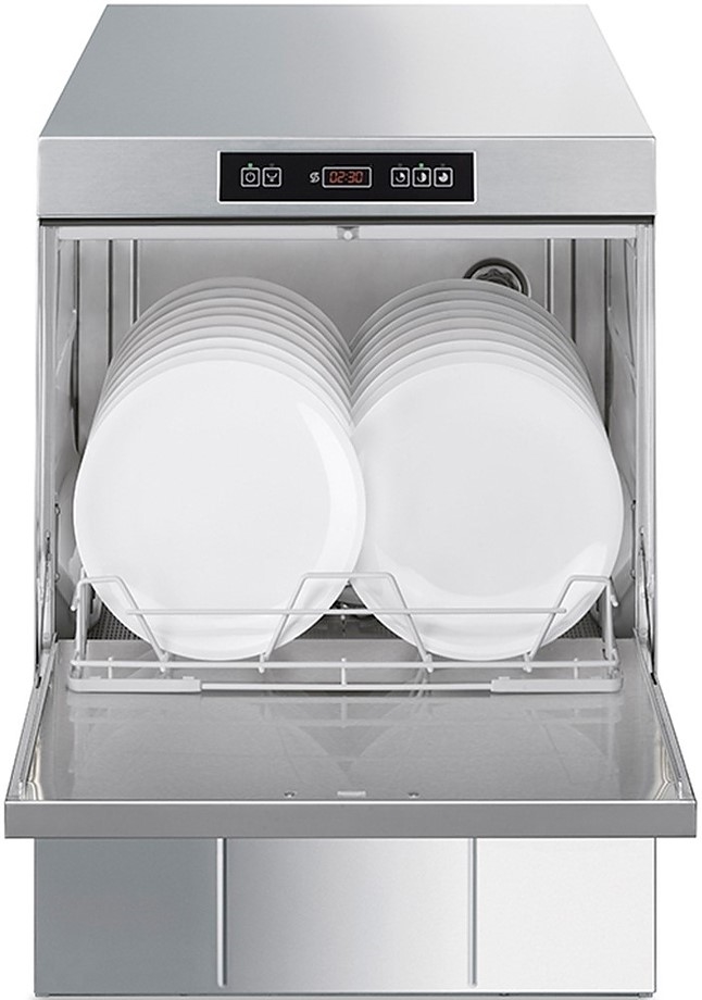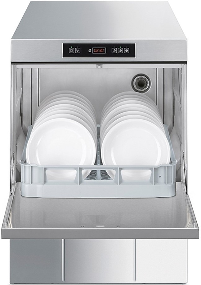 Машина посудомоечная с фронтальной загрузкой SMEG SPD505 используется на предприятиях общественного питания и торговли для мойки столовых приборов, тарелок, стаканов, чашек и другой посуды.